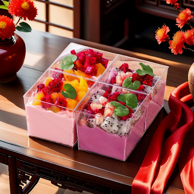 10个 正方慕斯杯 150ml 一次性四方果立方九宫格慕斯杯 毕业蛋糕正方形木糠杯布丁杯