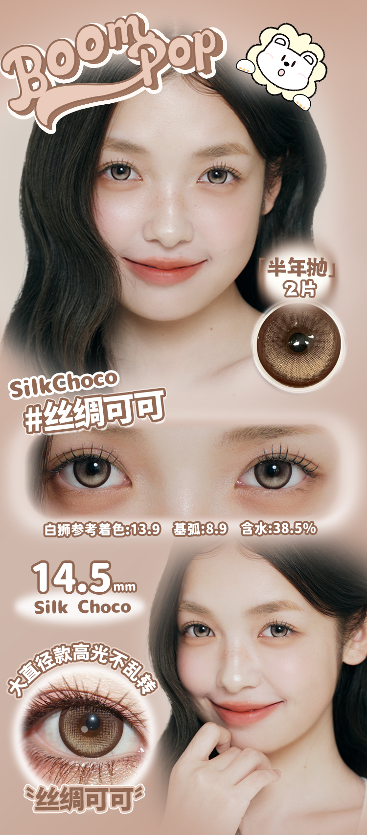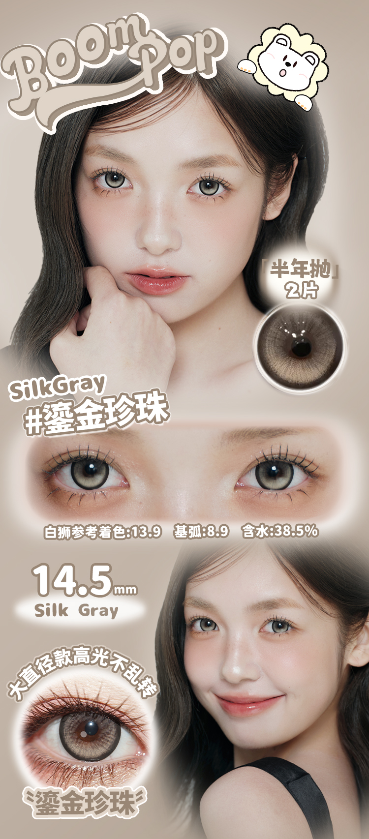 Boompop旗下 · 【高光不乱转系列】鎏金珍珠&丝绸可可|14.5mm白狮参考着色大直径 半年抛2片
