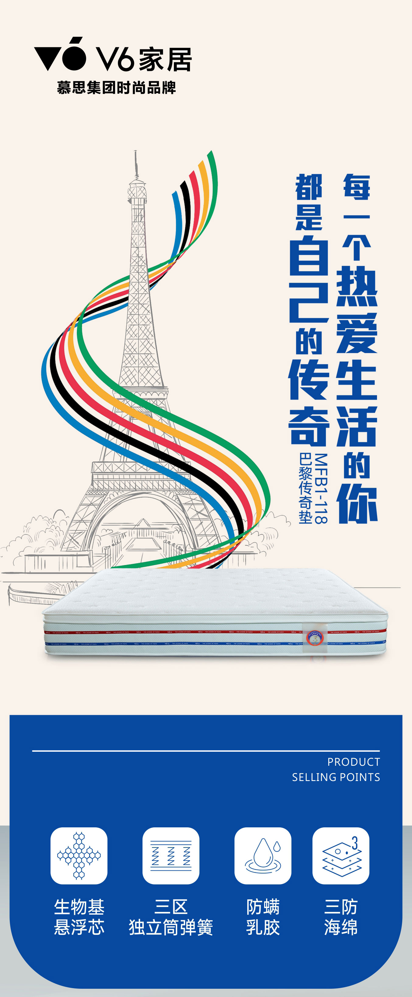 V6 家居以年轻化的潮流风范、出色的产品创意、智能化的配套硬件,为年轻人打造专属的睡眠空间与卧居生活体验,满足其对审美品位表达、个性化功能使用、高质量睡眠等的“需求。
