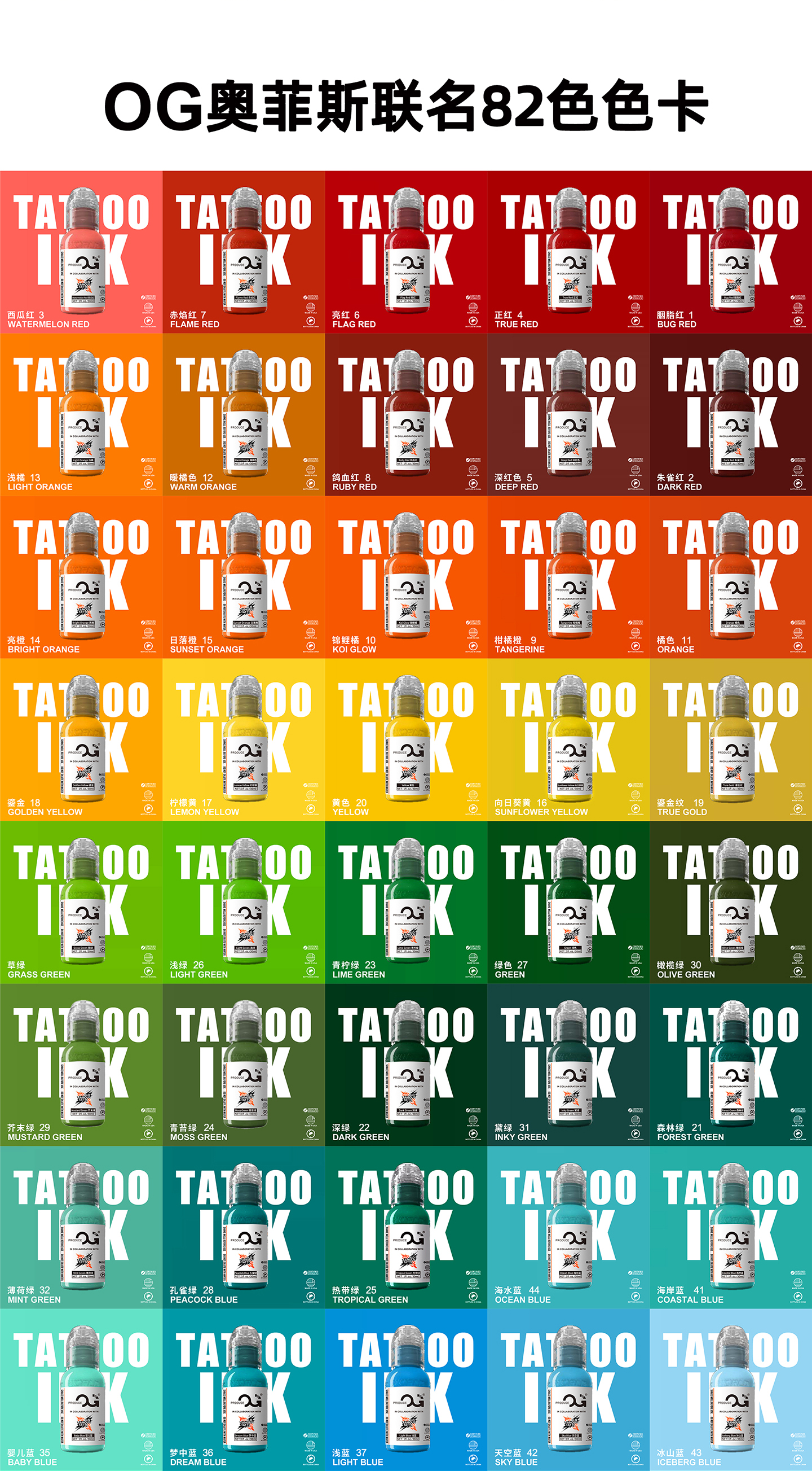 奥菲斯纹身色料OG彩色墨水美国进口原装刺青暖颜料官方授权惊蛰器材