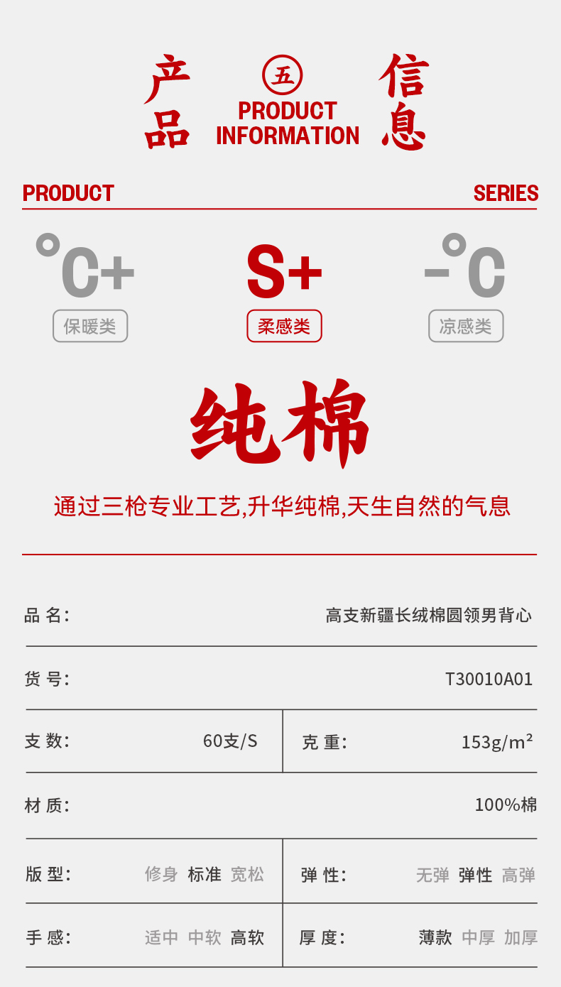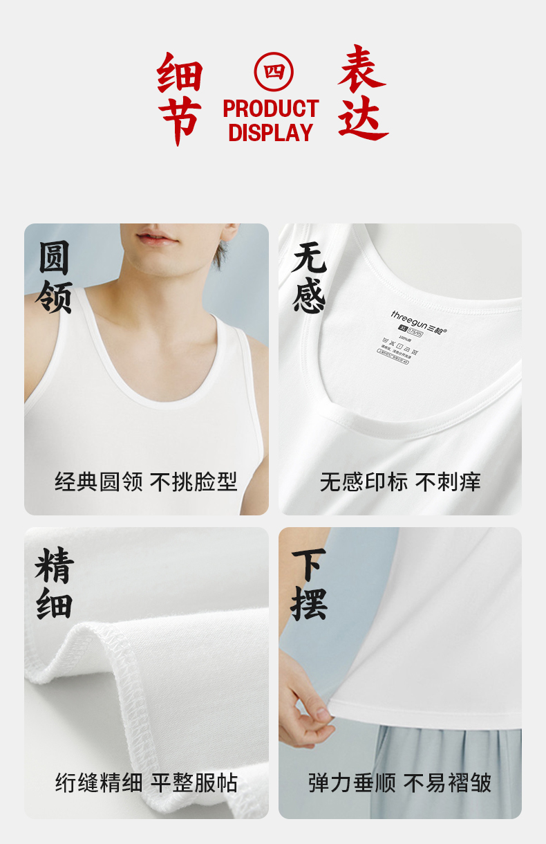 三枪高支新疆长绒棉圆领男背心 T30010A01