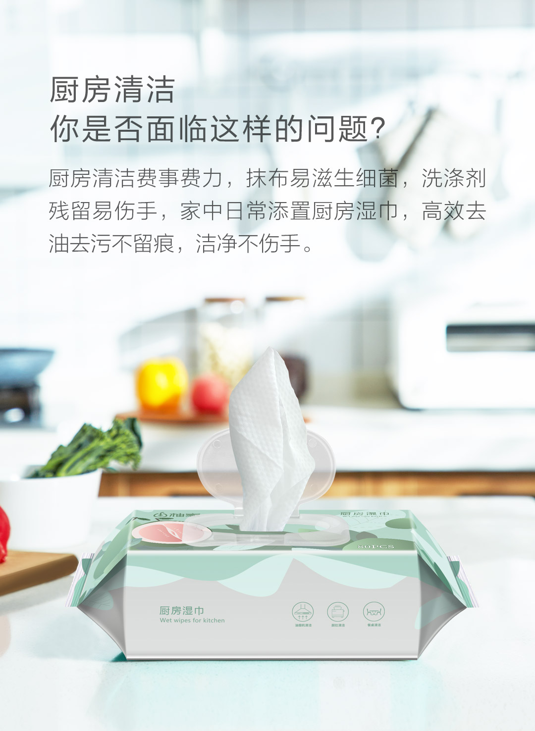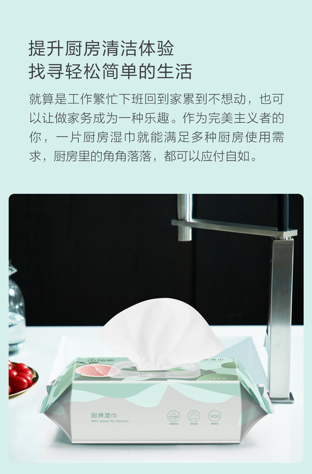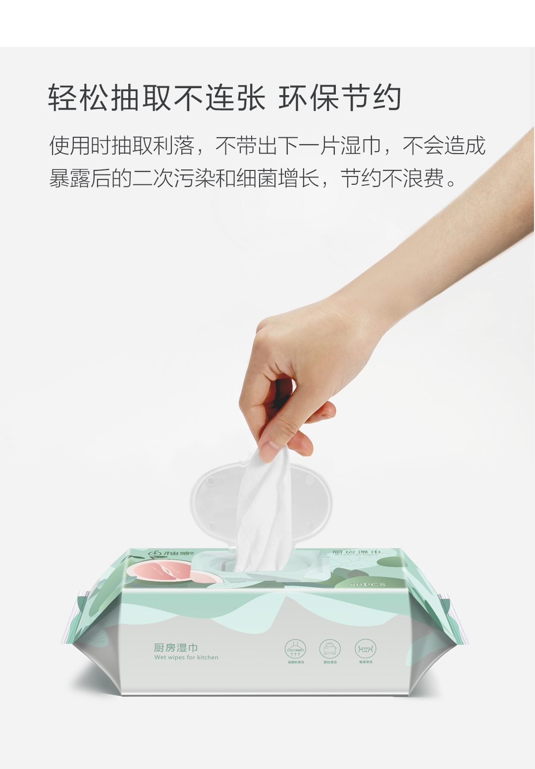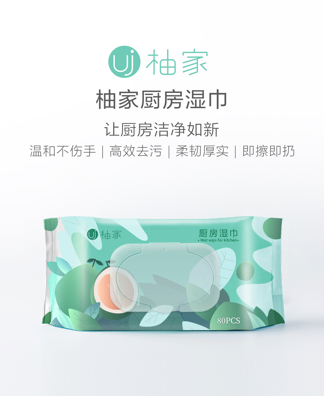 柚家厨房湿巾80片/包 3包/箱130233