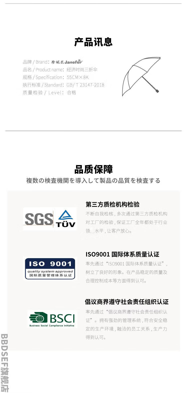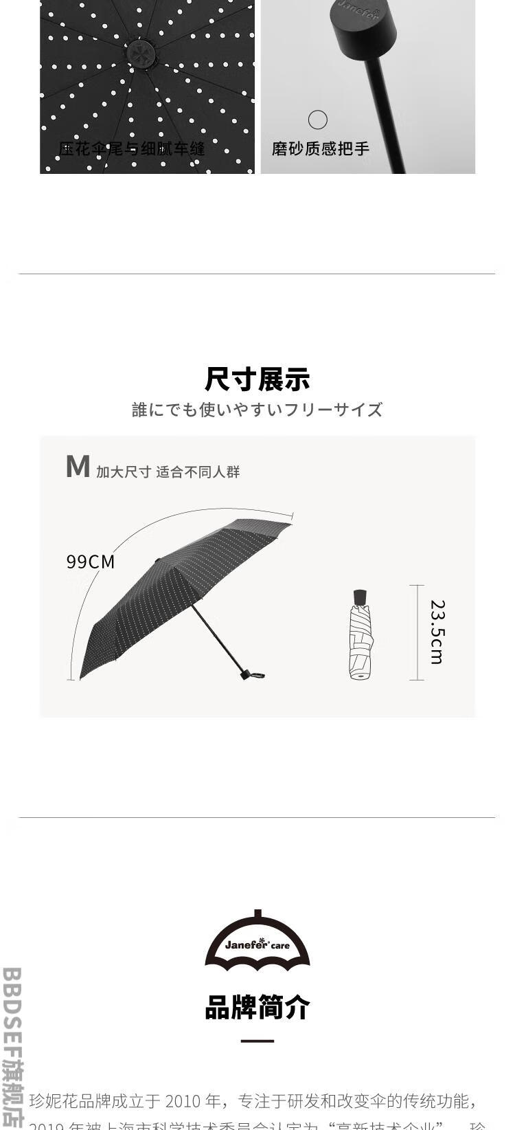 珍妮花 雨伞 Janefer珍妮花经济时尚三折雨伞一甩即干经典波点男女超涂层
