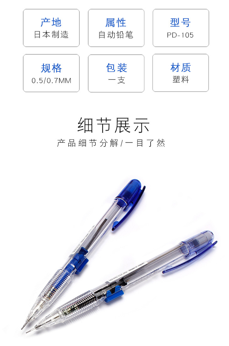 Pentel派通侧按式自动铅笔0.5mm