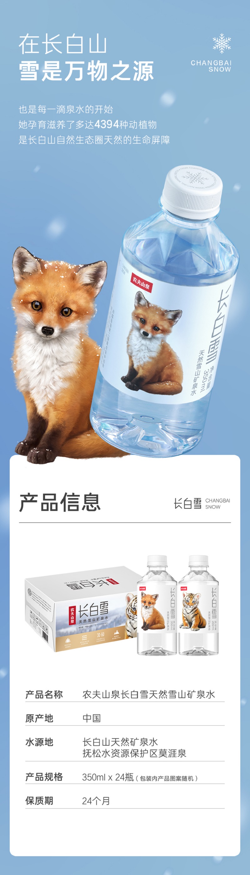 农夫山泉 长白雪天然雪山矿泉水 350ml*24瓶