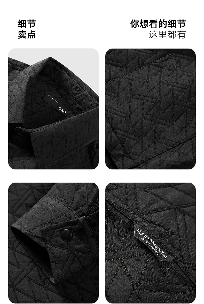 GXG男装 经典几何肌理设计衬衫男简约通勤上装休闲 2025春季热卖