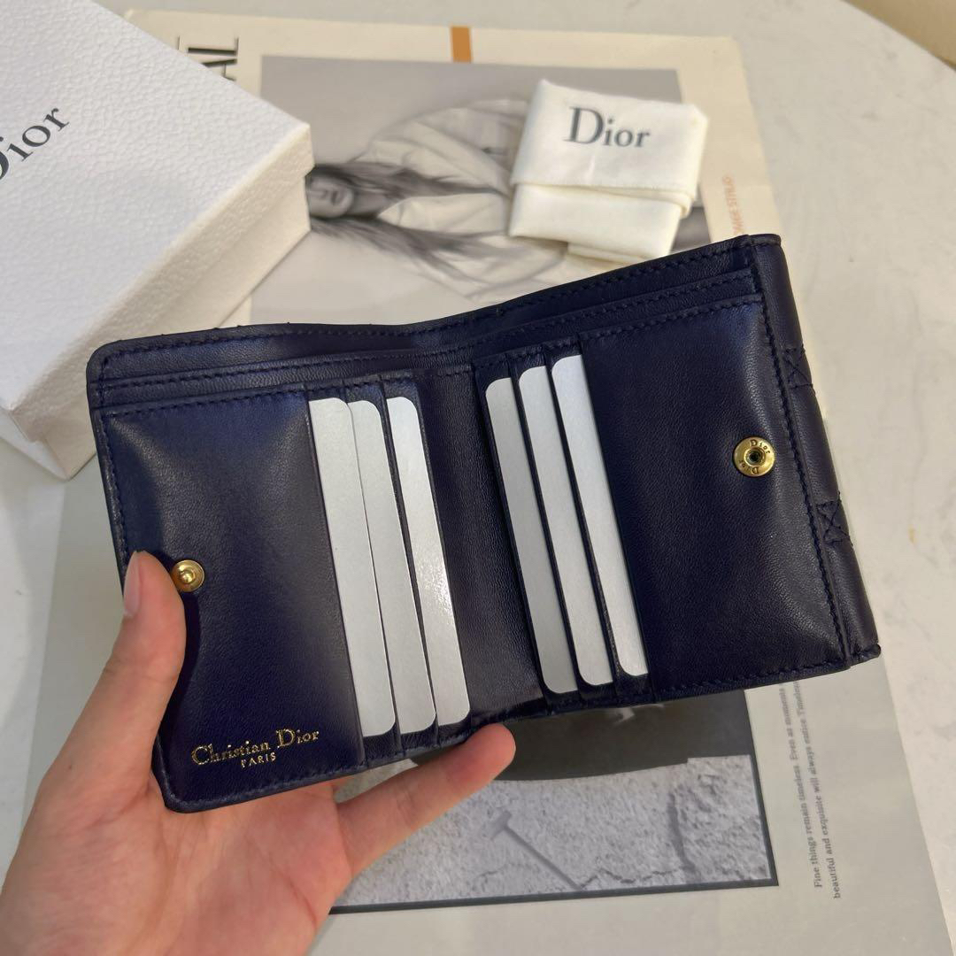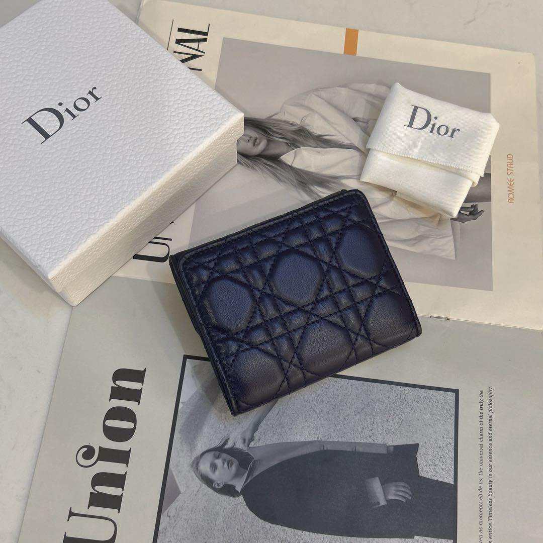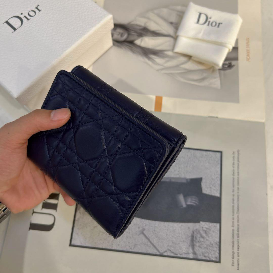 【商品詳情】正品二手 Dior Addict 短款 羊皮 蓝色 藤格纹 小钱包 🥳98新 12×10 配件:防尘袋 盒子。奢华高级精致小钱包