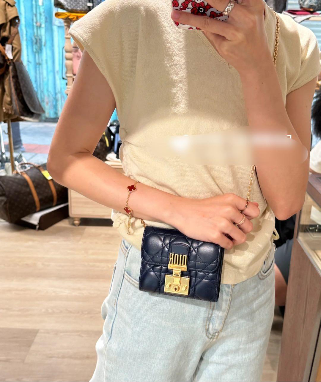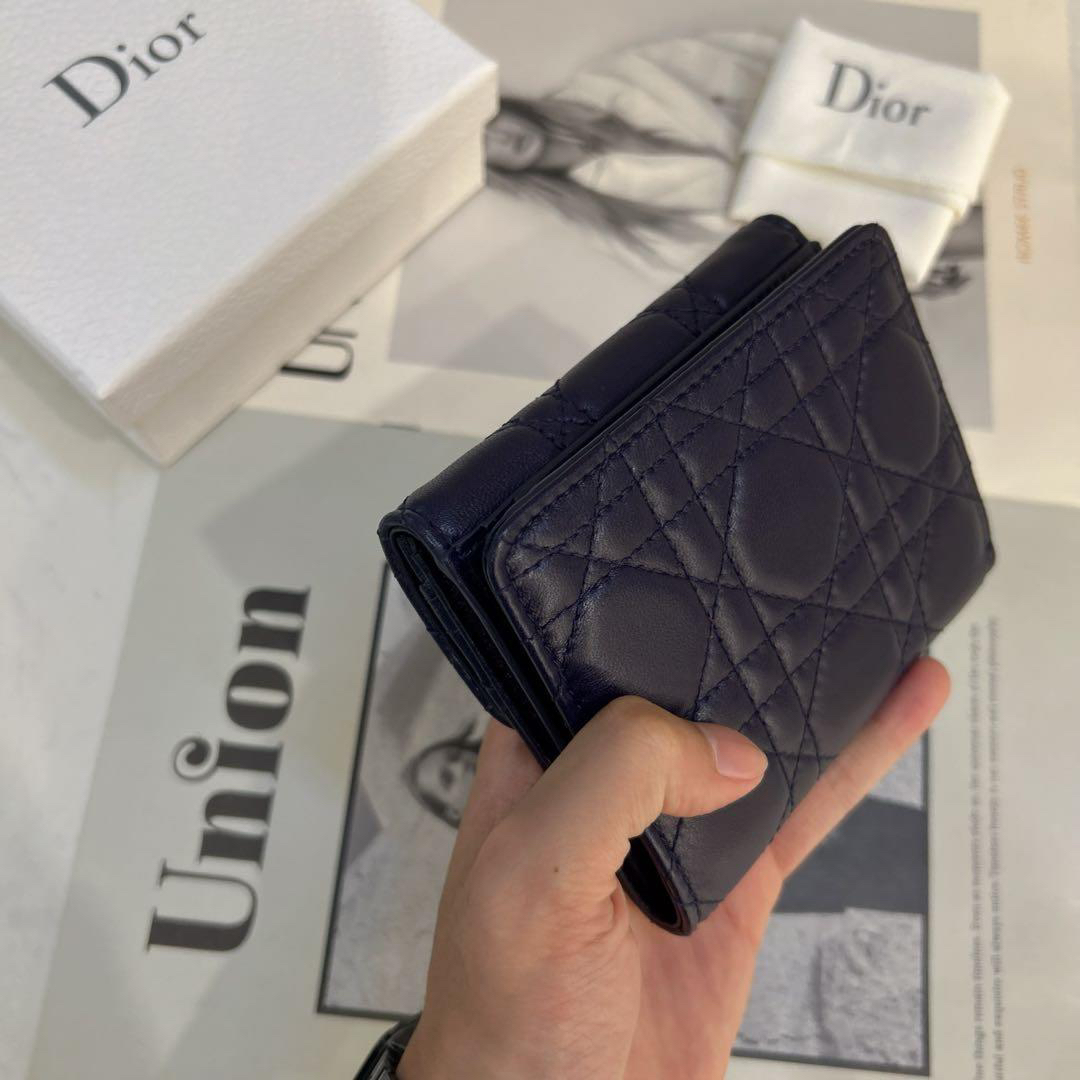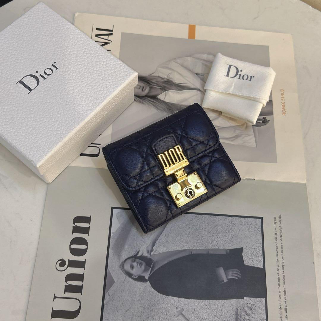 【商品詳情】正品二手 Dior Addict 短款 羊皮 蓝色 藤格纹 小钱包 🥳98新 12×10 配件:防尘袋 盒子。奢华高级精致小钱包