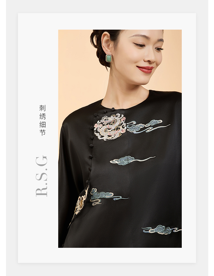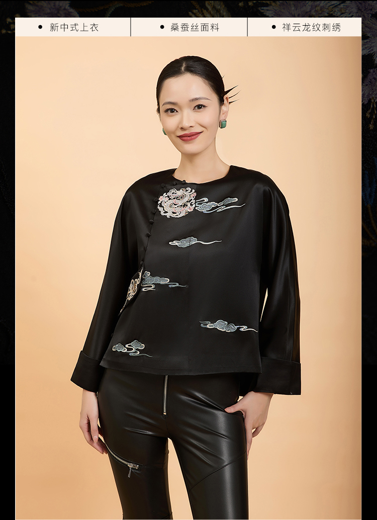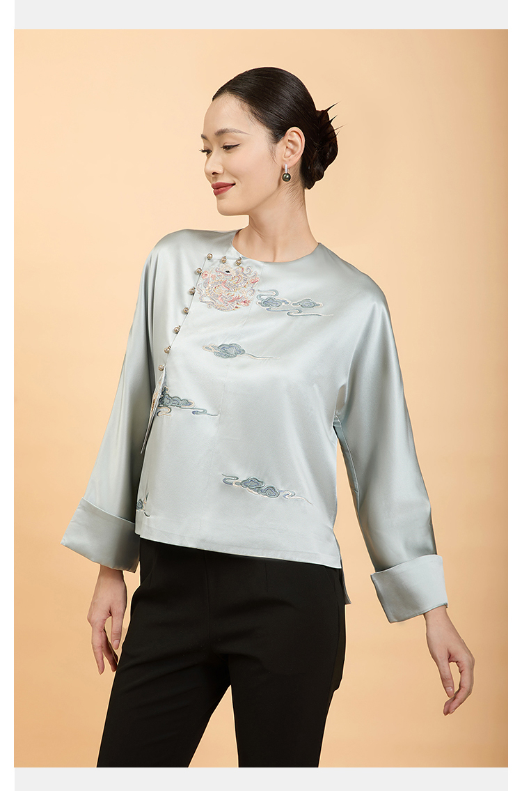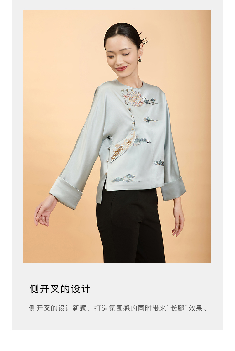 东方境X郭培联名系列:轻高定团龙祥云刺绣斜襟外套