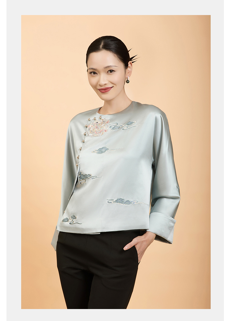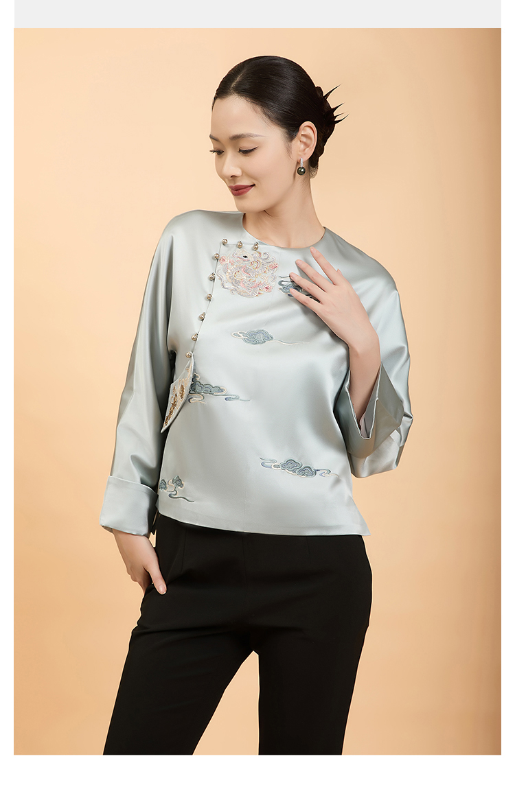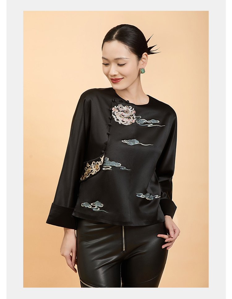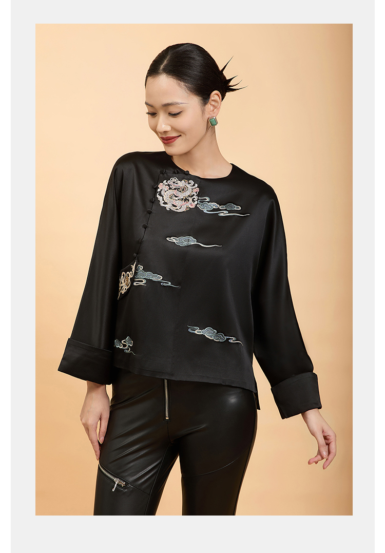 东方境X郭培联名系列:轻高定团龙祥云刺绣斜襟外套