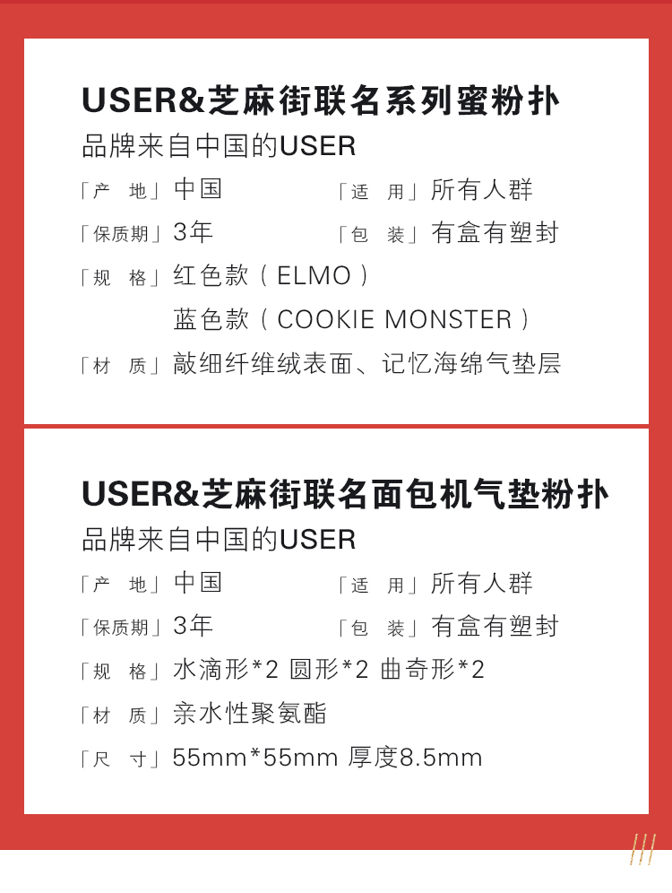 USER芝麻街联名款粉扑