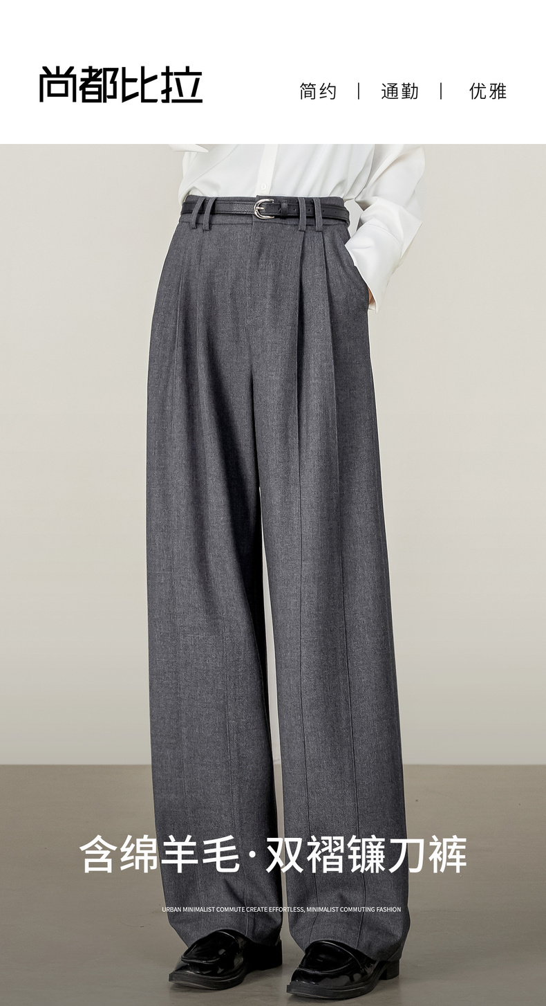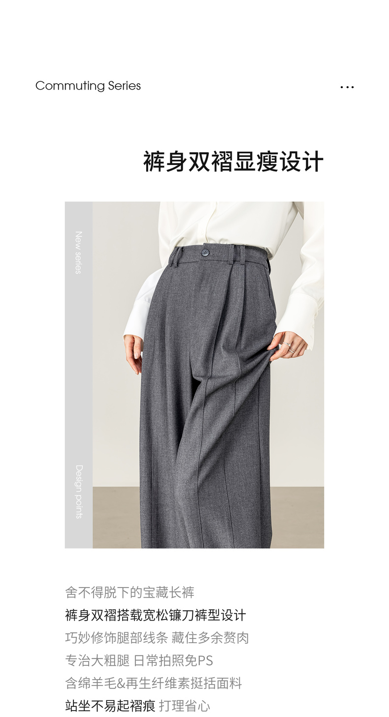 【内购】【含绵羊毛】都市通勤松紧腰立体双褶藏肉显瘦宽松长裤镰刀裤-153K58921