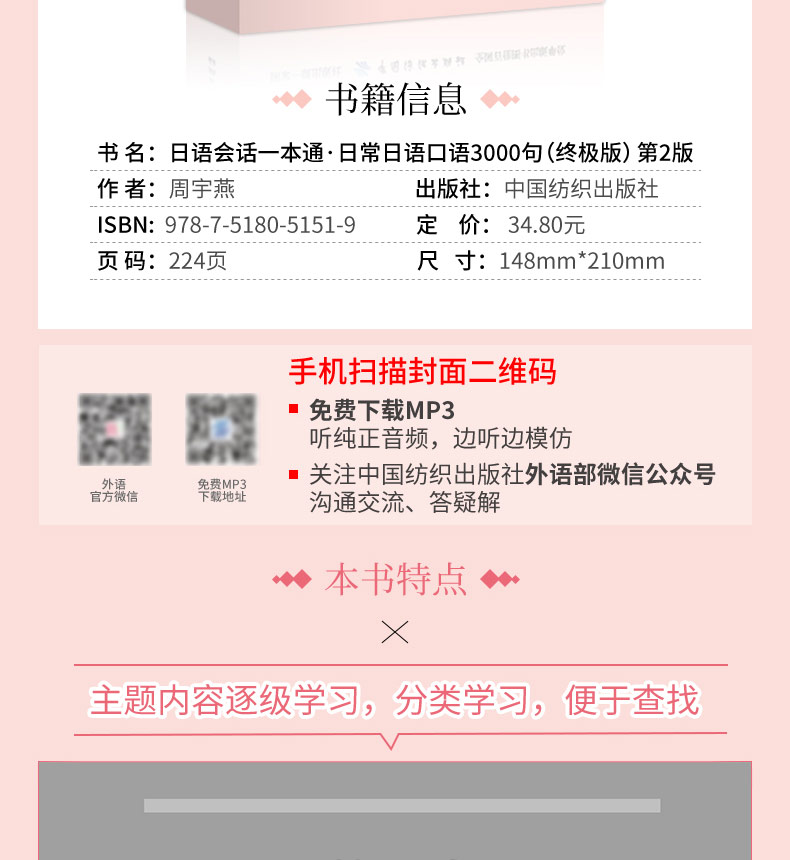 日语会话一本通 日常日语口语3000句 终极版(第2版) 周宇燕 著 外语-实用英语 文教 中国纺织出版社