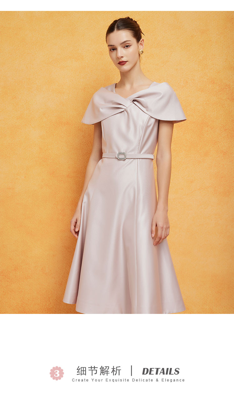 PF8D1斯尔丽24新款法式通勤连衣裙轻场合设计感立体花苞领赫本风连衣裙