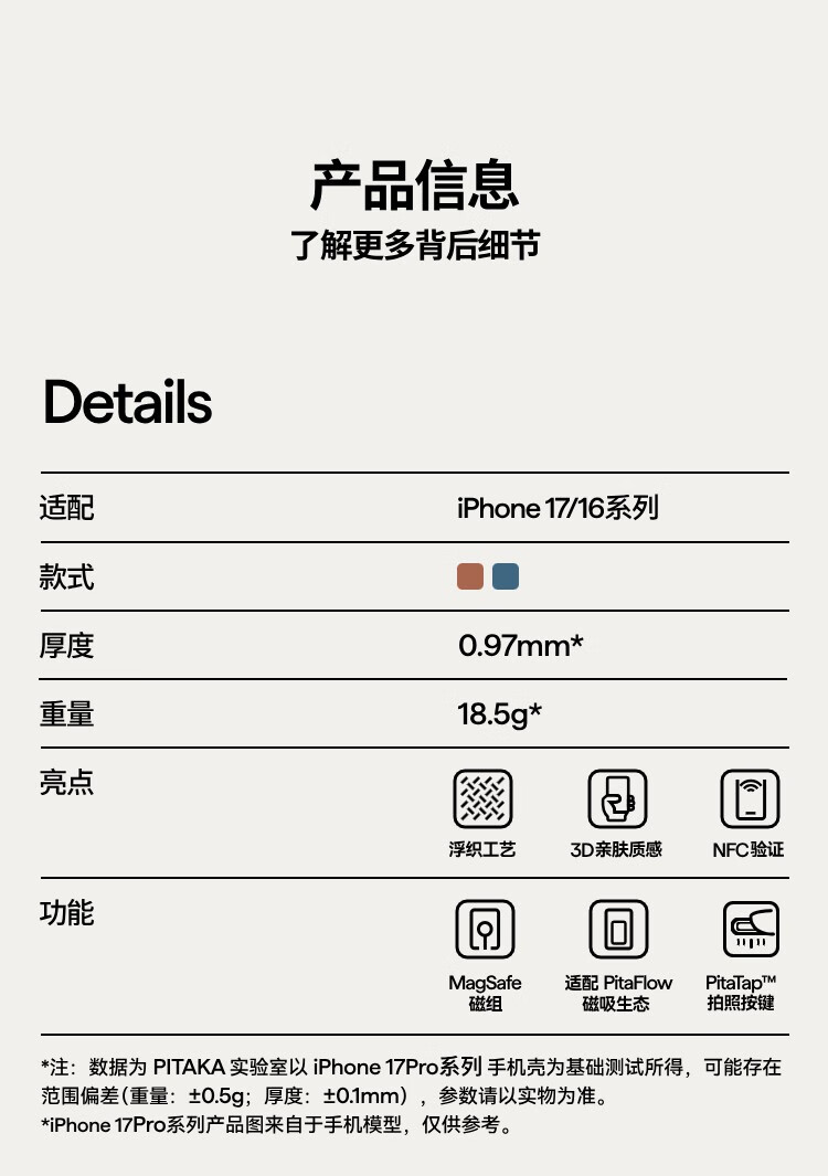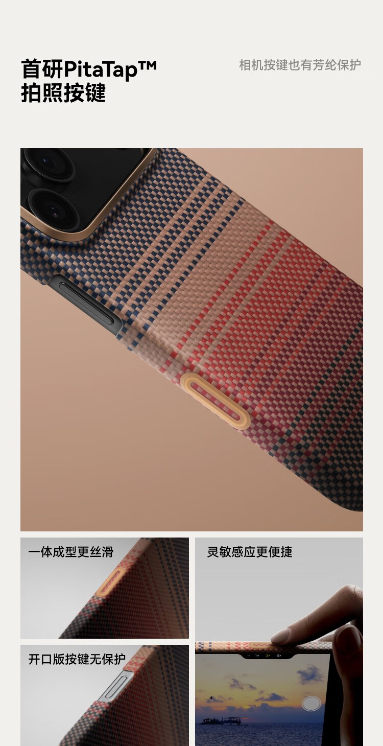 PITAKA iPhone 系列超薄芳纶纤维全包 PitaTap 按键保护壳-17 Pro 系列