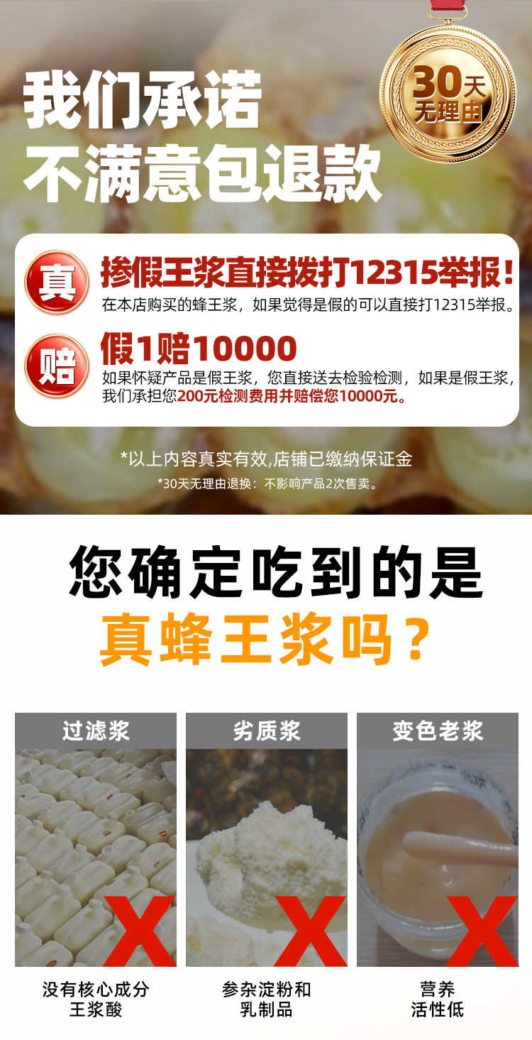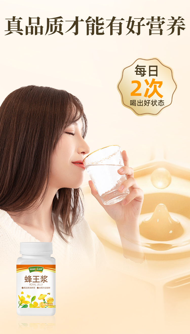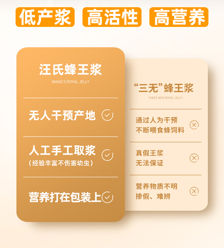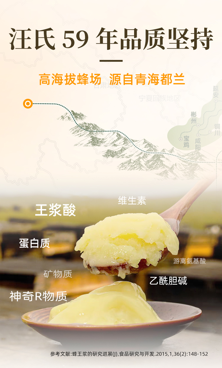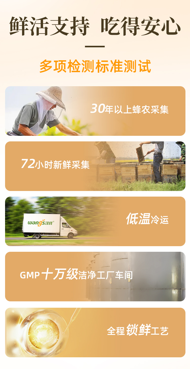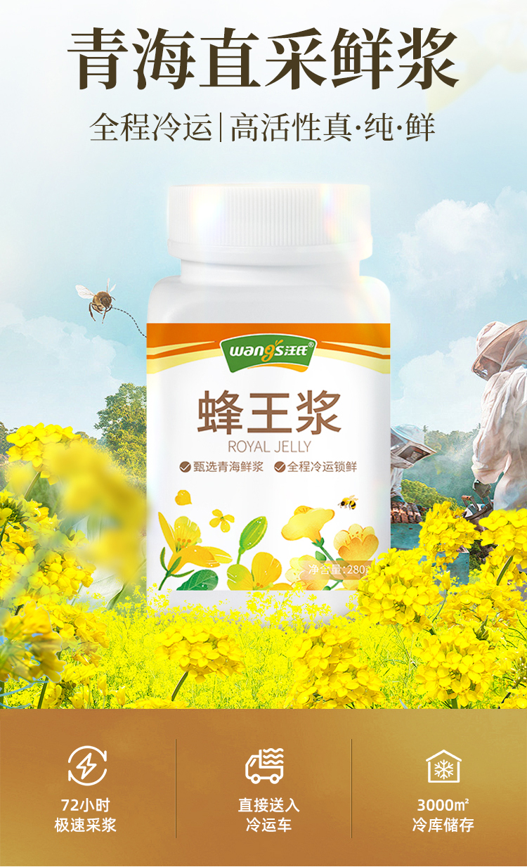 【尊享5盒装|买5月送45天】汪氏甄品蜂皇浆王浆酸含量≥2.2% 300g*5(送15g王浆片3盒,到手6个月量)