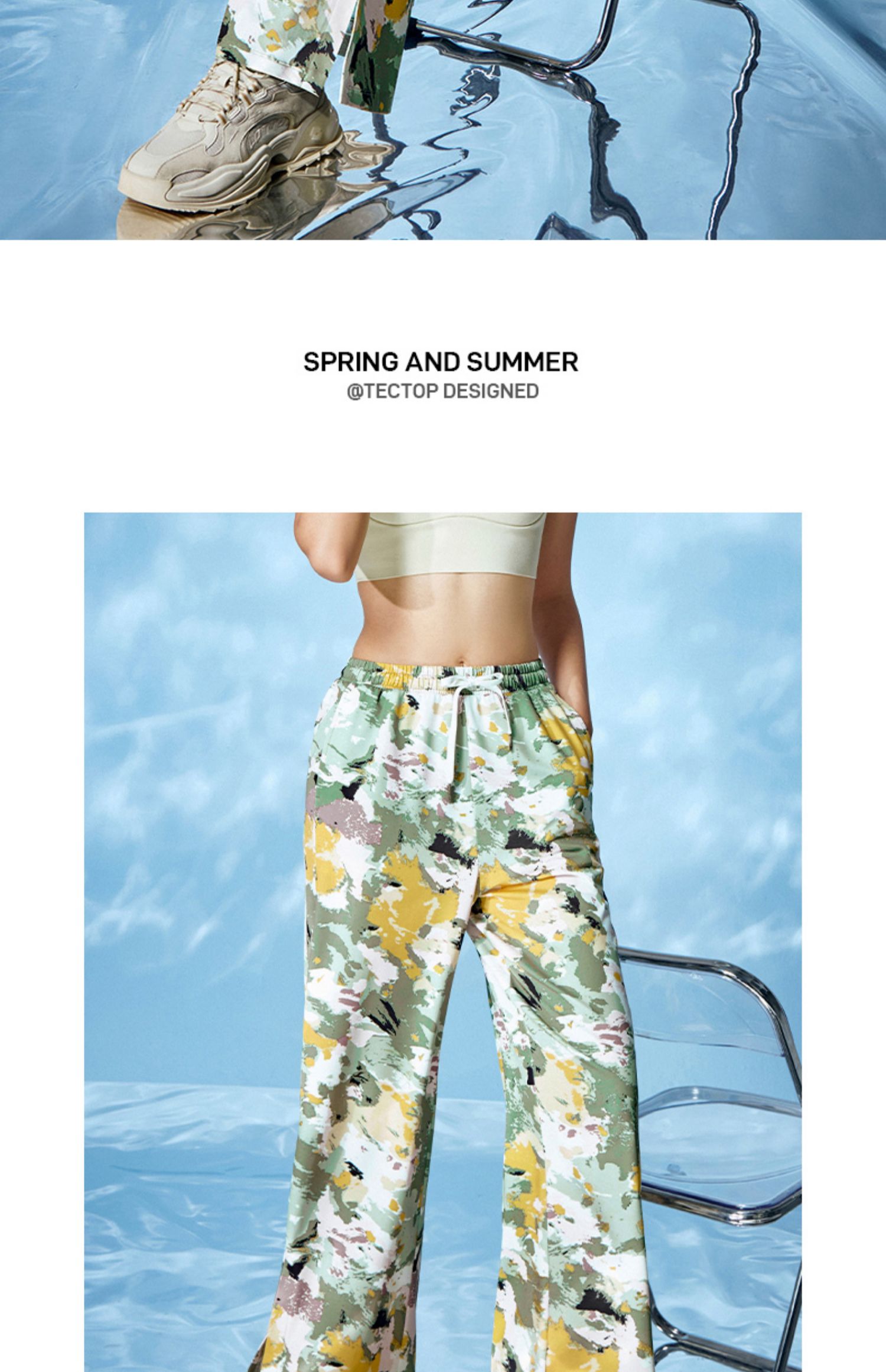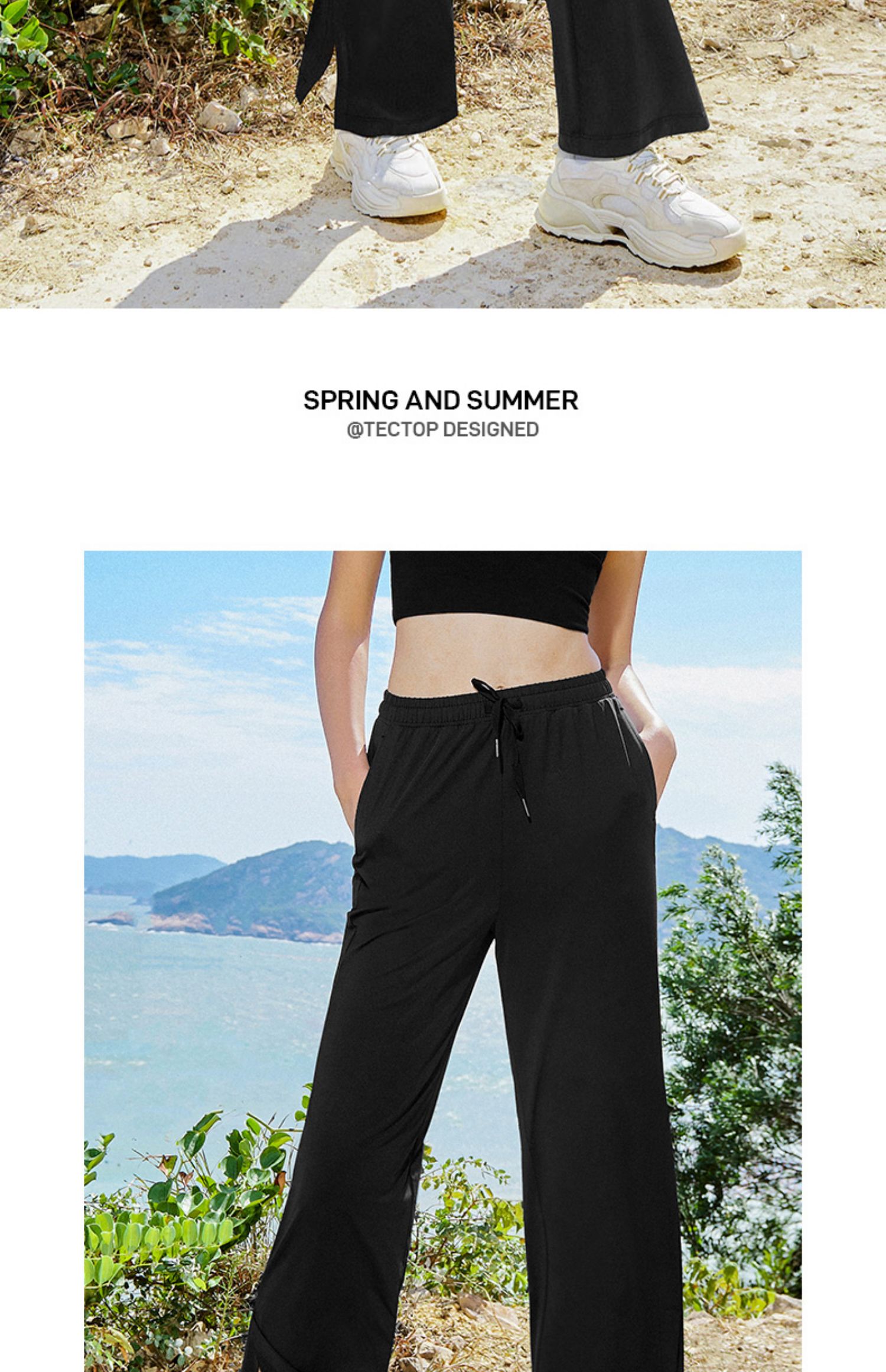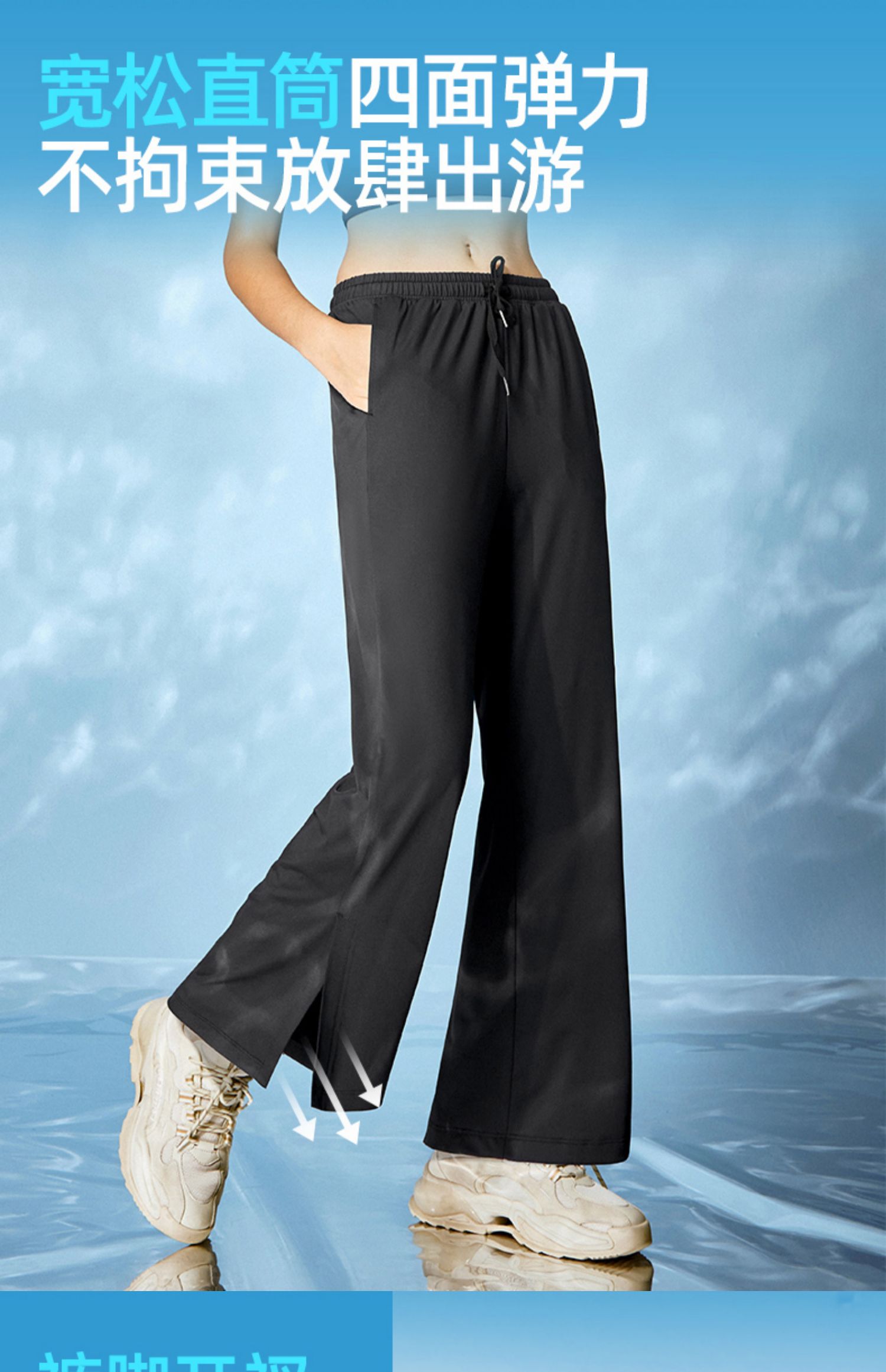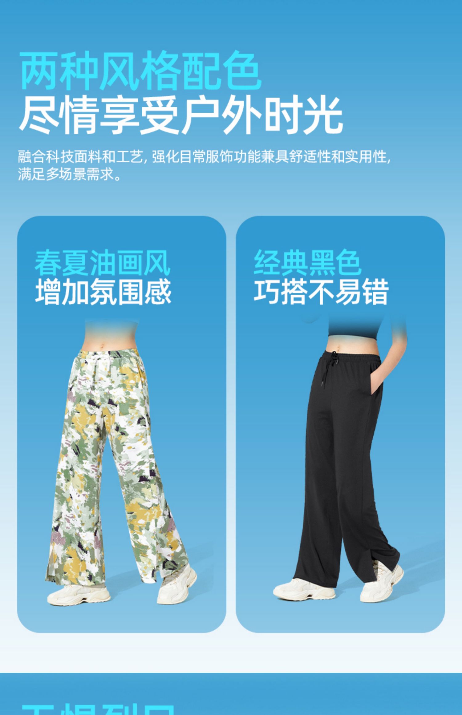 探拓户外微喇裤女士春夏新款高腰花色开衩显瘦阔腿防晒休闲长裤