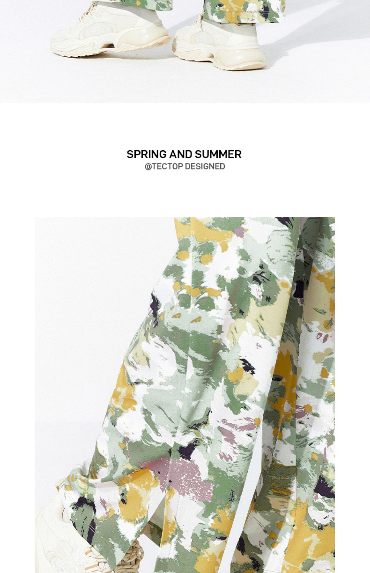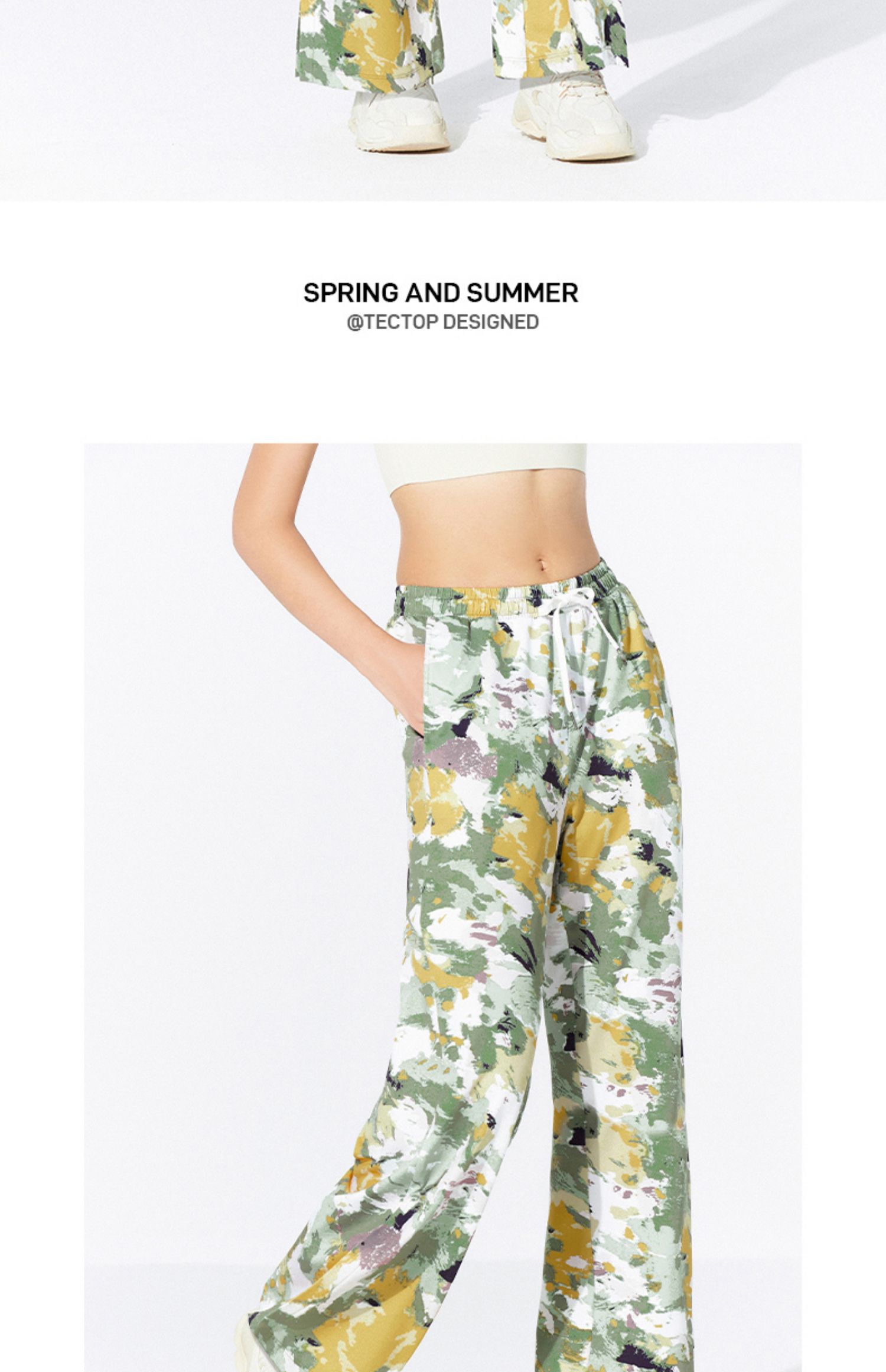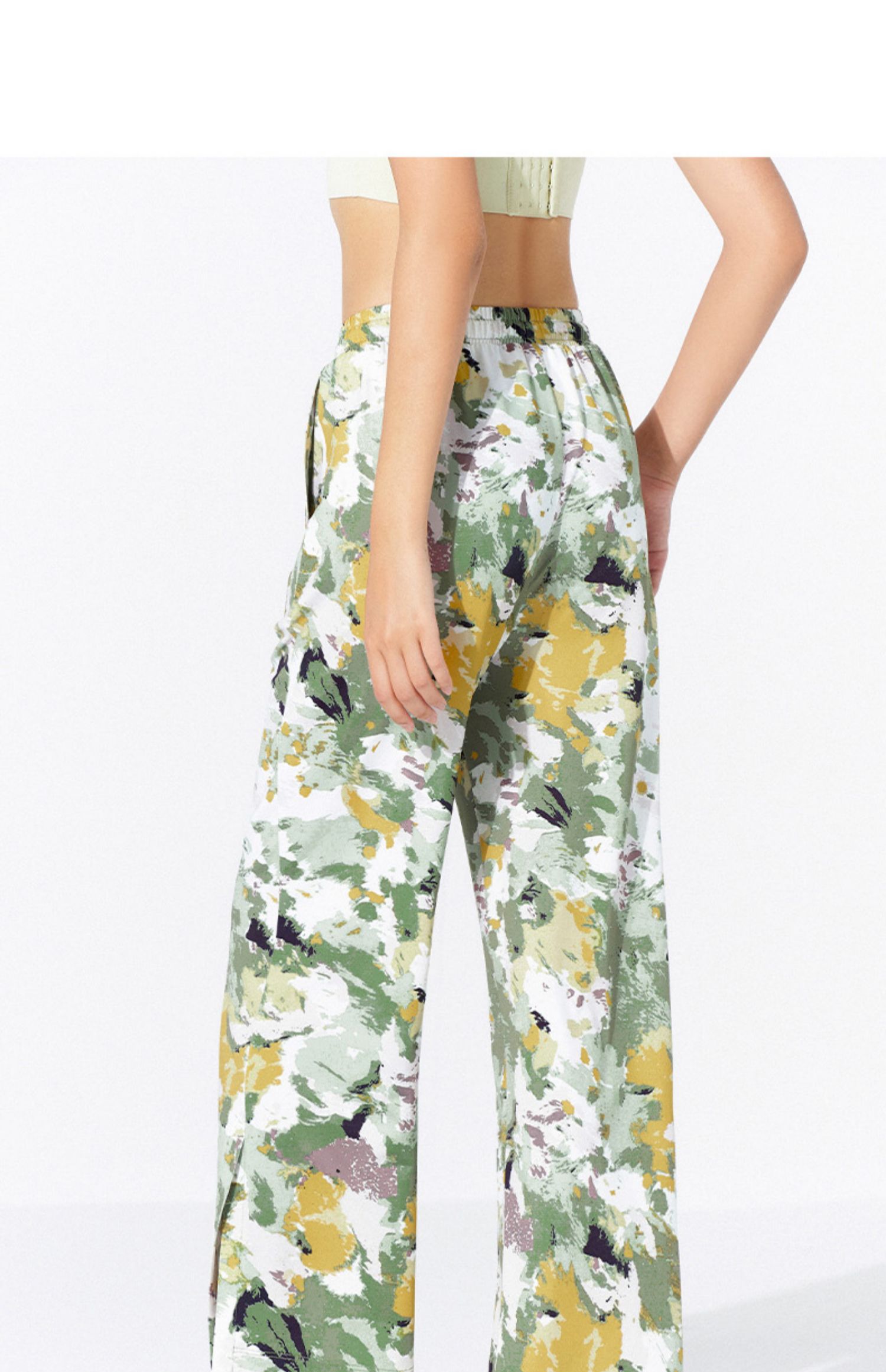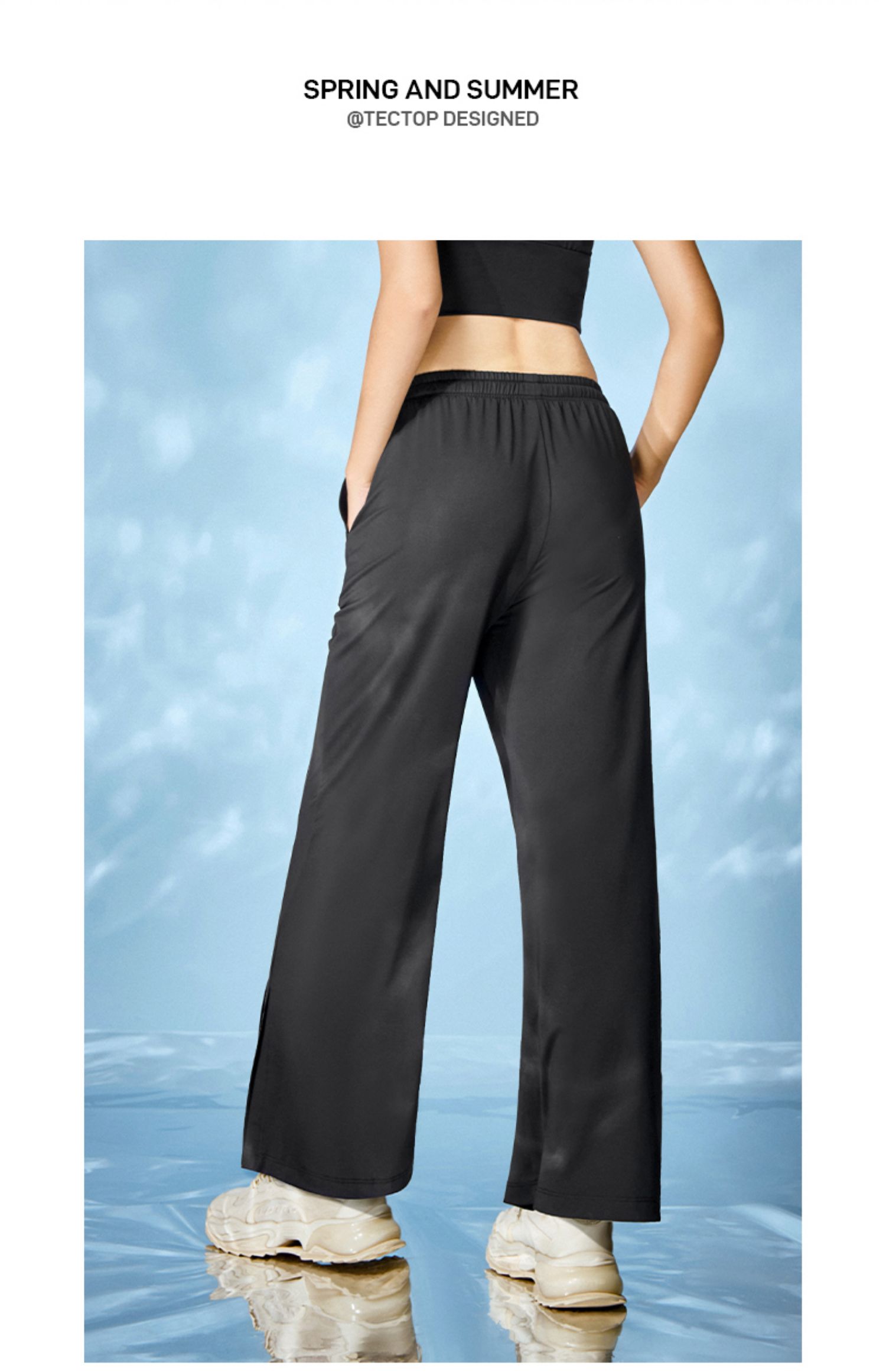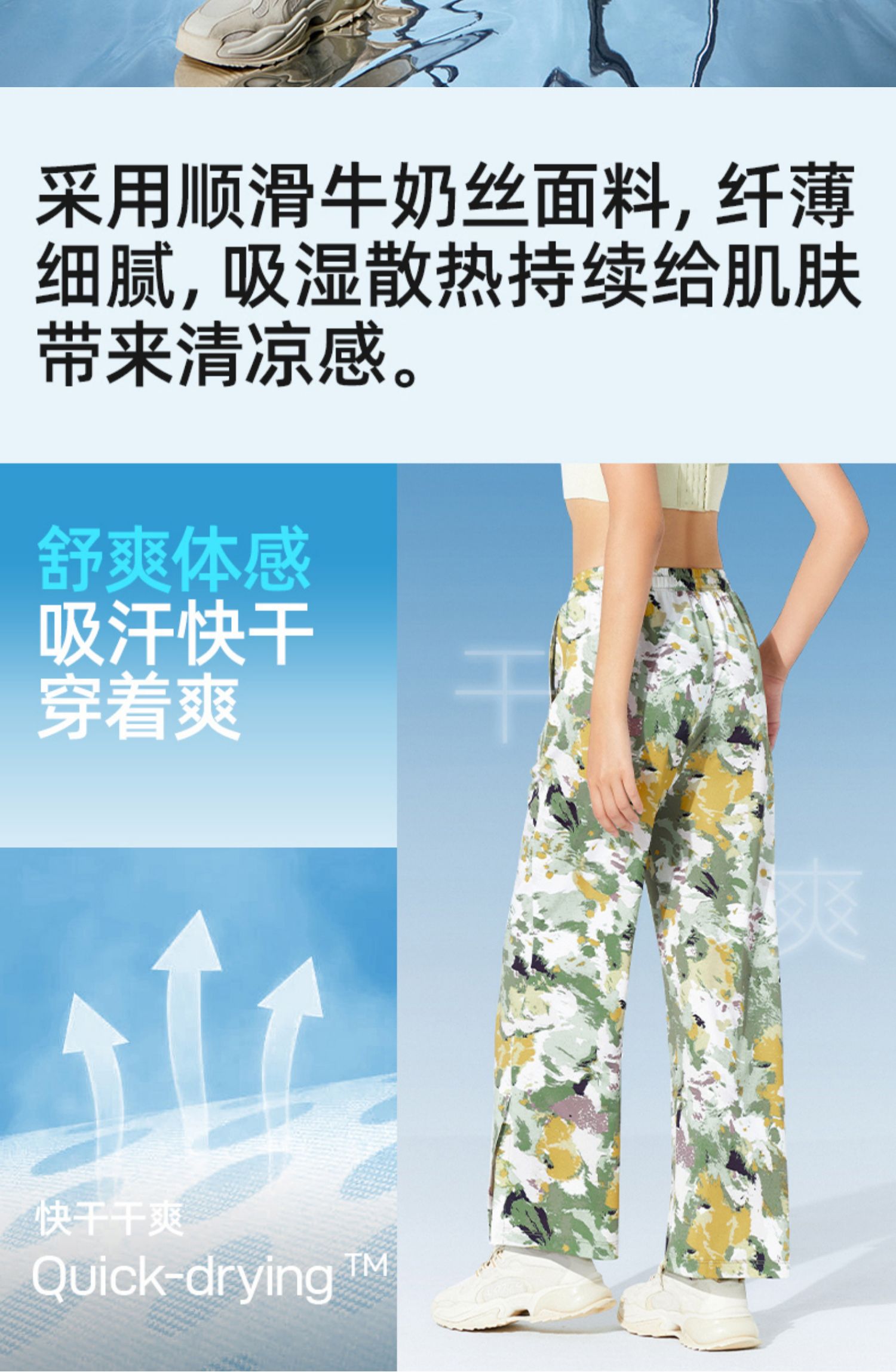 探拓户外微喇裤女士春夏新款高腰花色开衩显瘦阔腿防晒休闲长裤