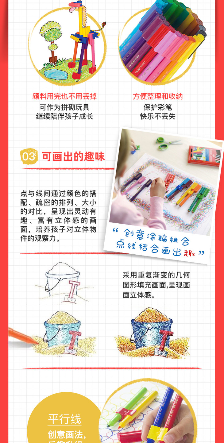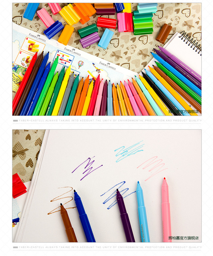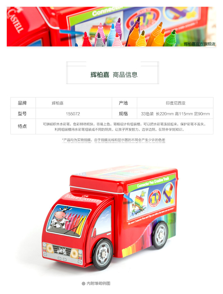 辉柏嘉小汽车学生儿童幼儿园可拼砌宝宝可水洗绘画积木水彩笔套装 33色