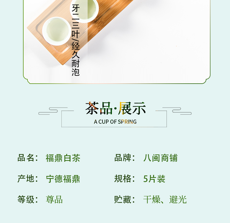 0593【国企严选,山海食材】福鼎白茶2018年寿眉(350g*5片)