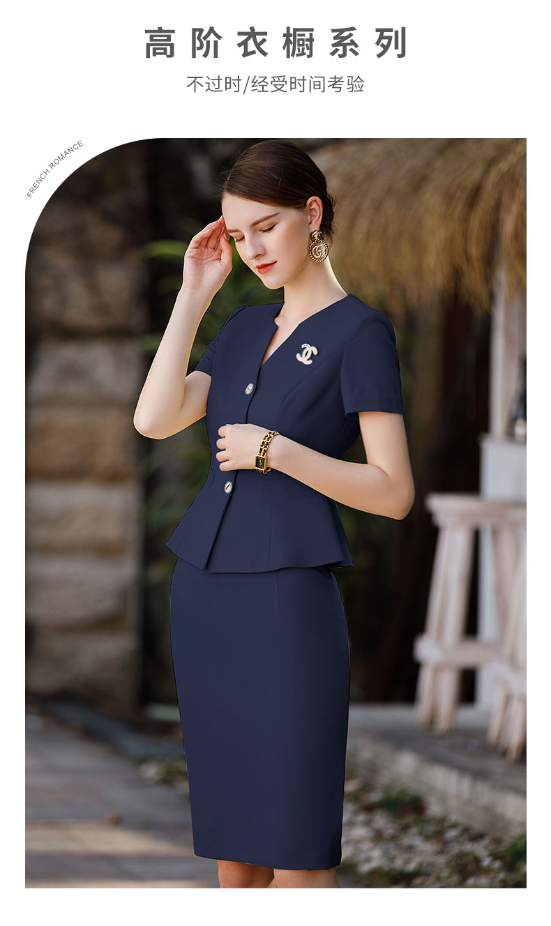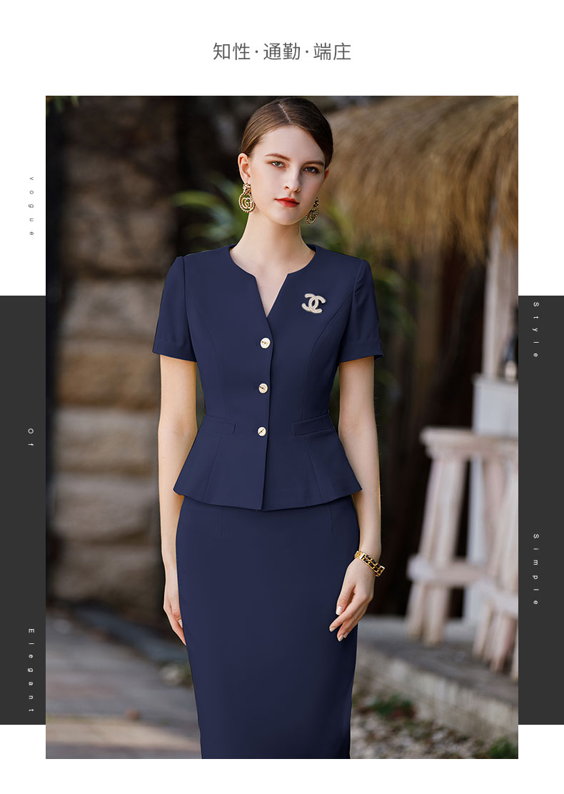 IWY/藏青色短袖西装套裙女夏季新款气质修身显瘦两件套CS01774