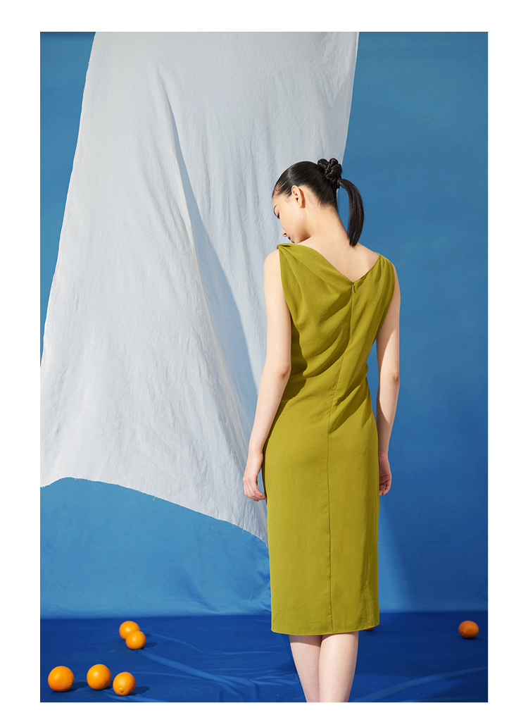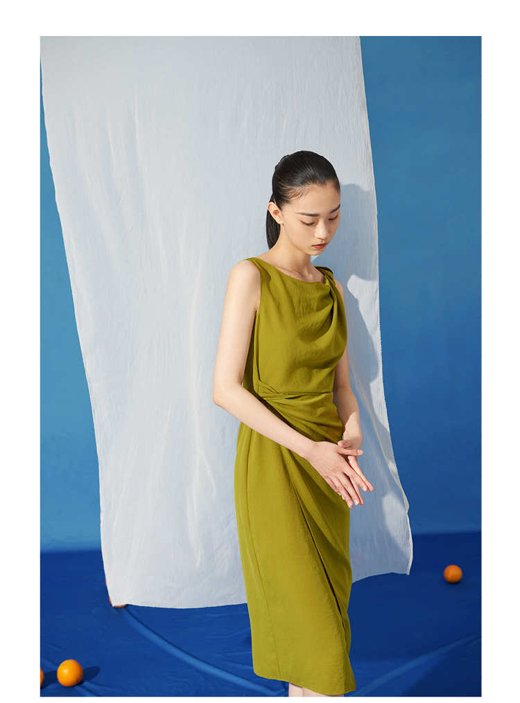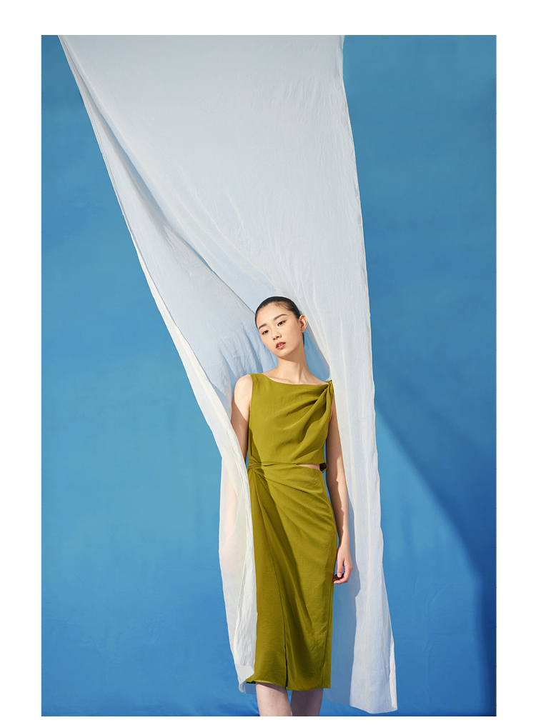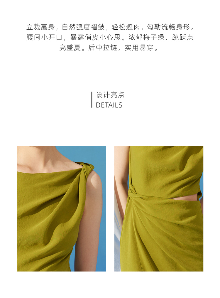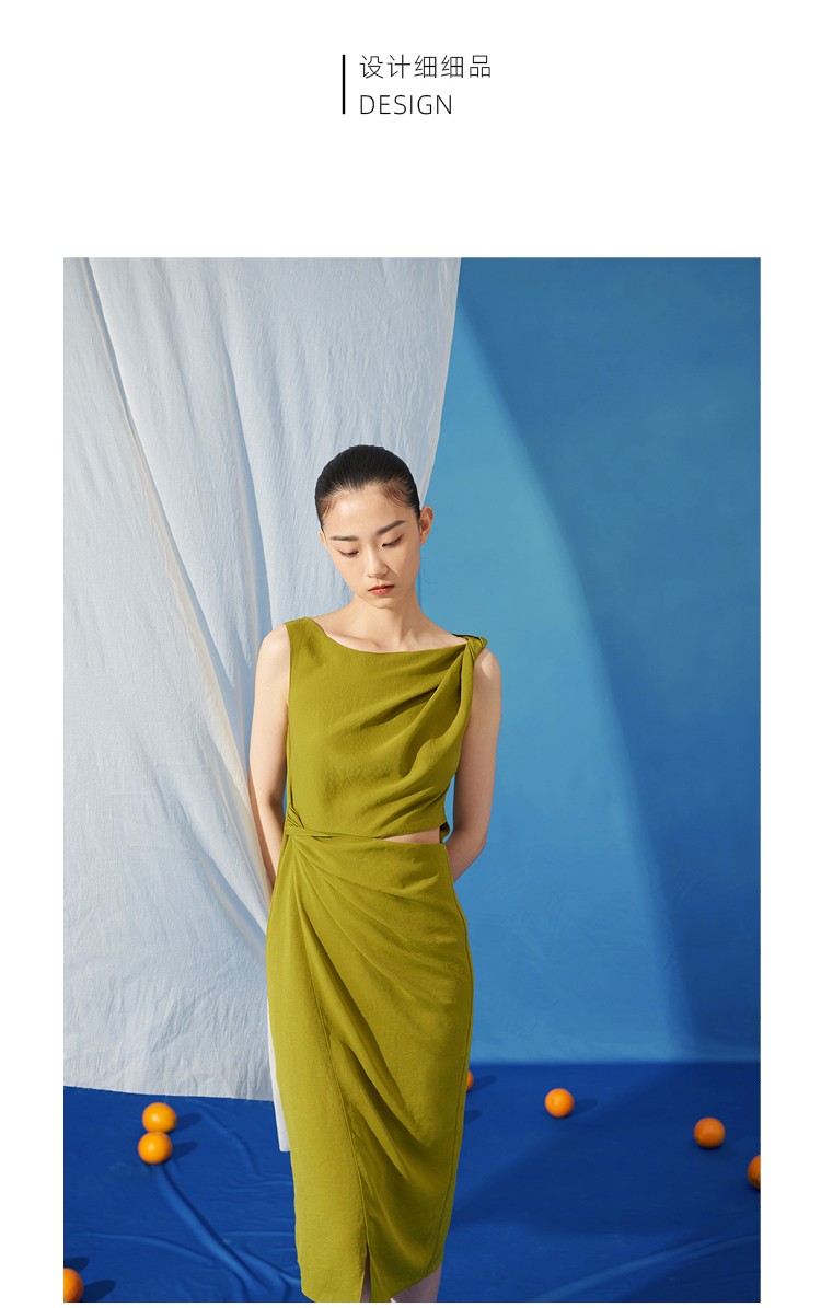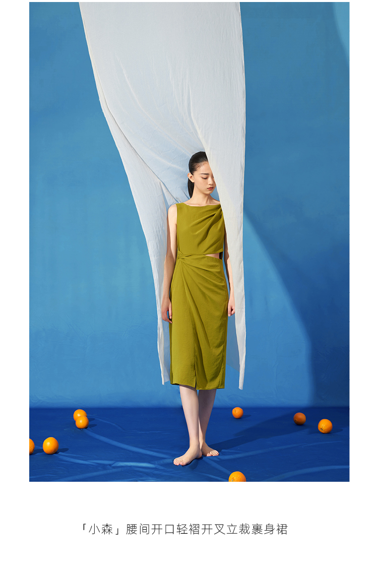 【小森】少女感腰间开口轻褶开叉立裁显瘦裹身裙/0000724