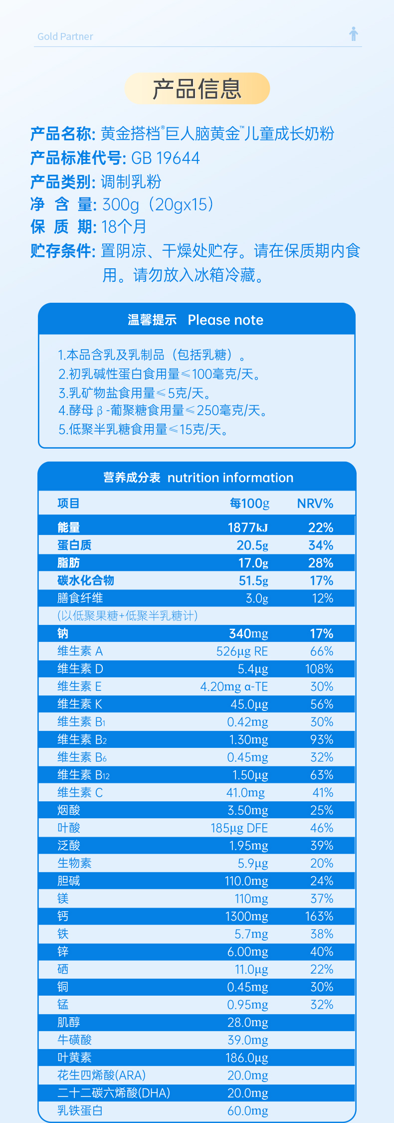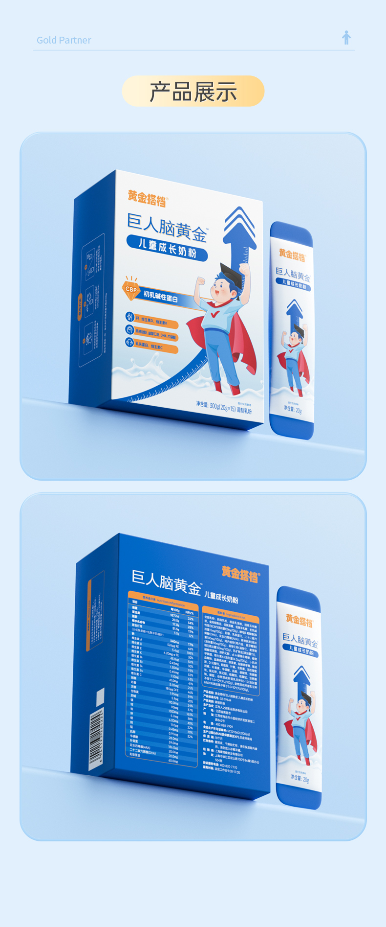 黄金搭档巨人脑黄金儿童成长奶粉20g*15条