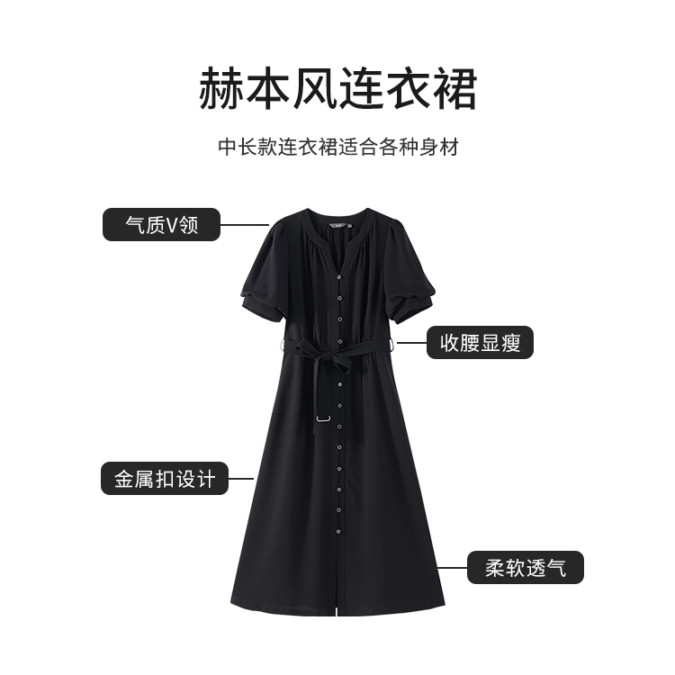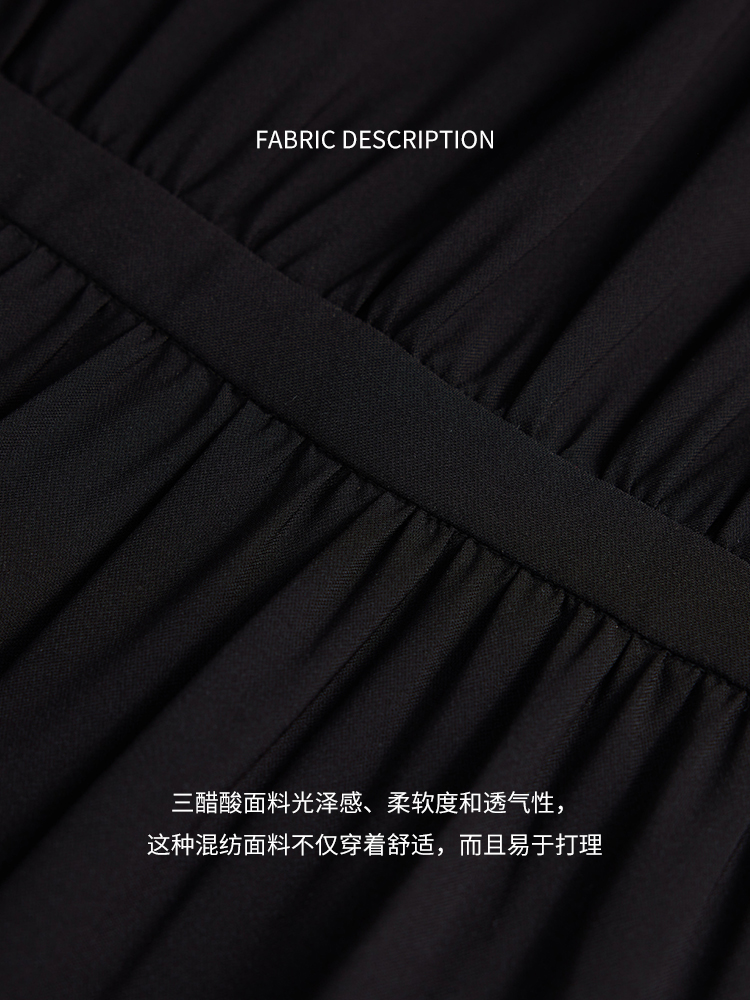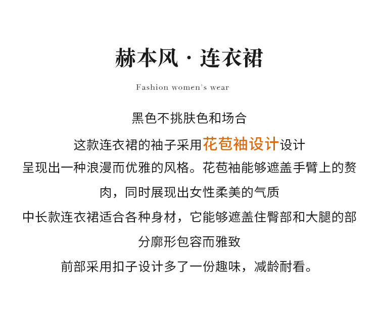 【商场同款】CJDJ517 “ 复古情怀小黑裙 ” 都市经典黑色收腰连衣裙 醋酸质地垂感 顺滑 吸湿透气 造型小灯笼袖,修饰大臂的线条