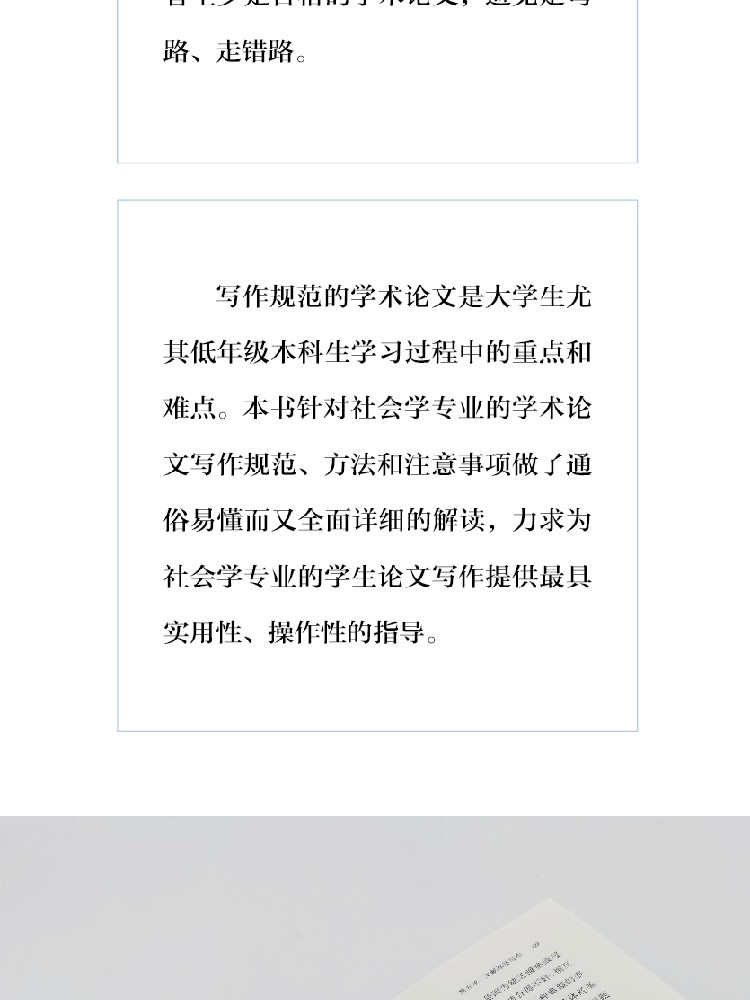 写作规范的学术论文是大学生尤其低年级本科生学习过程中的重点和难点。本书针对社会学专业的学术论文写作规范、方法和注意事项做了通俗易懂而又全面详细的解读,力求为社会学专业的学生论文写作提供具实用性、操作性的指导。