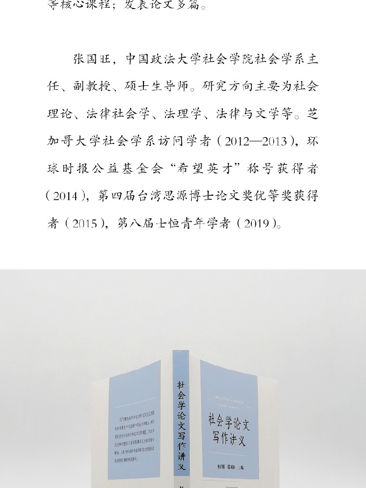 张国旺,中国政法大学社会学院社会学系主任、副教授、硕士生导师。研究方向主要为社会理论、法律社会学、法理学、法律与文学等。芝加哥大学社会学系访问学者(2012—2013),环球时报公益基金会“希望英才”称号获得者(2014),第四届台湾思源博士论文奖优等奖获得者(2015),第八届士恒青年学者(2019)。