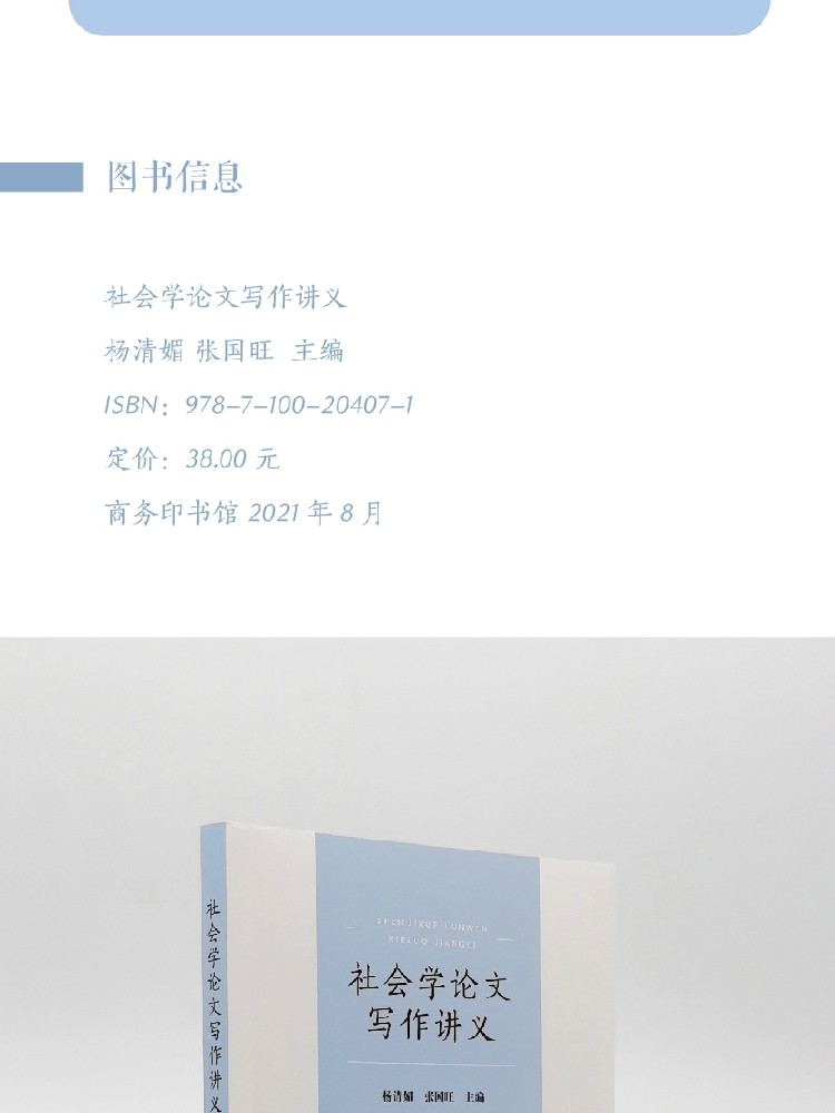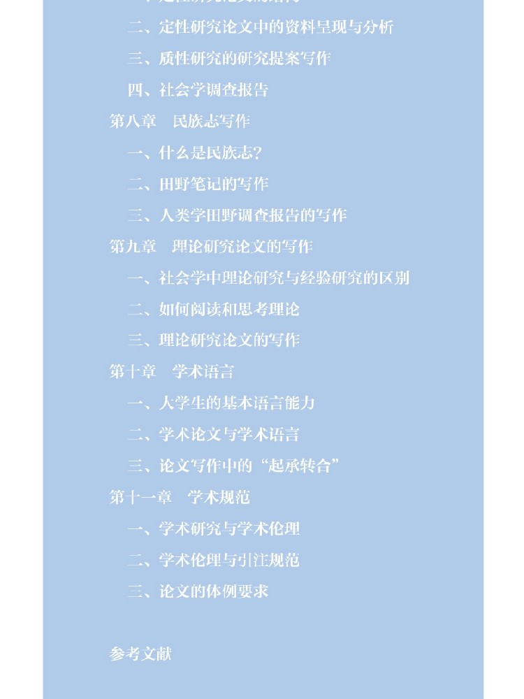 《社会学论文写作讲义》是一本为社会学专业学生定制的论文写作“宝典”。本书的几位编写者均为中国政法大学等高校社会学院的教授、副教授,无论是在学术研究还是在教学工作中,都对于社会学论文写作有着丰富的经验和切身的体会,因此能够直击大学生论文写作中的盲点和痛点,从而帮助大学生在论文写作过程中按照学术规范完成一篇篇优秀的或者至少是合格的学术论文,避免走弯路、走错路。