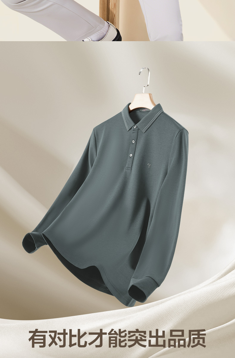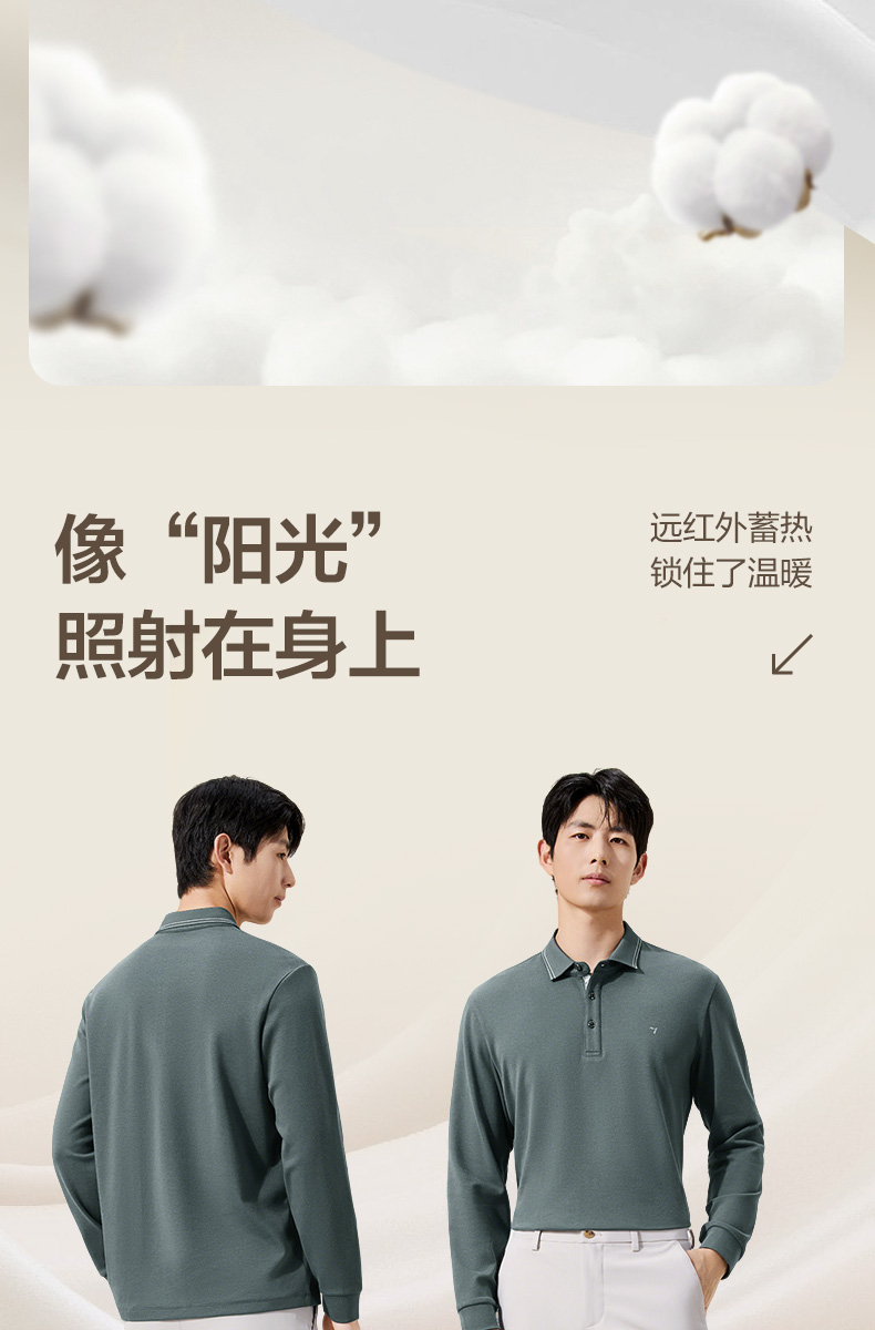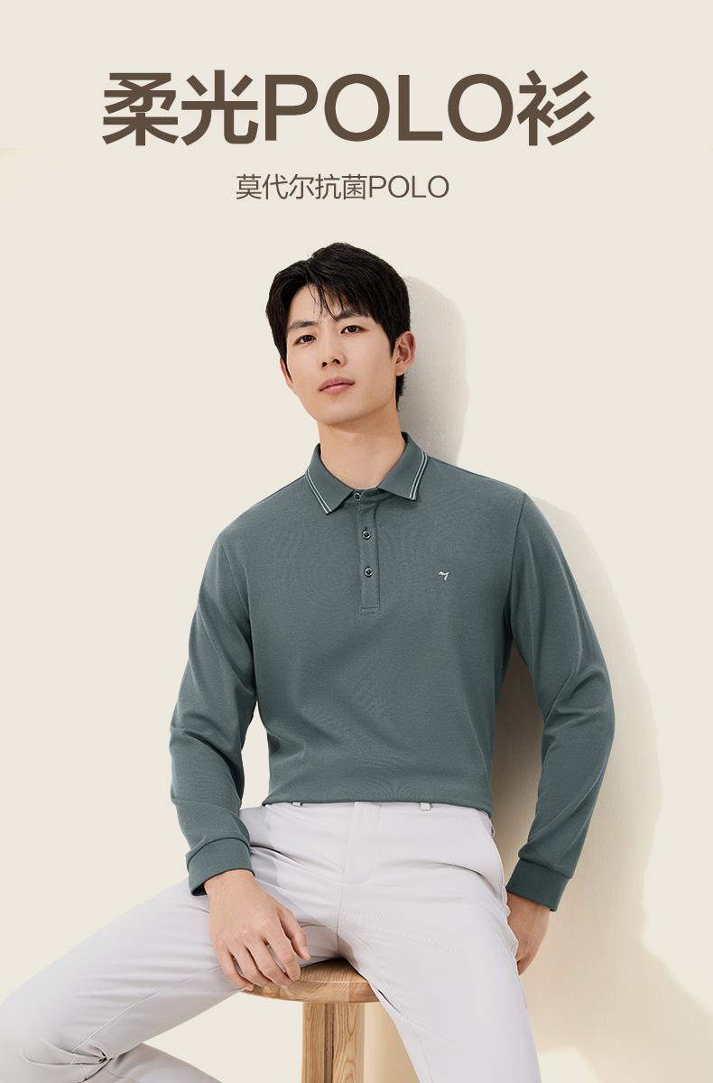 【远红外发热/不变形领】柒牌长袖Polo衫男秋季抗菌防螨翻领T恤129T70480