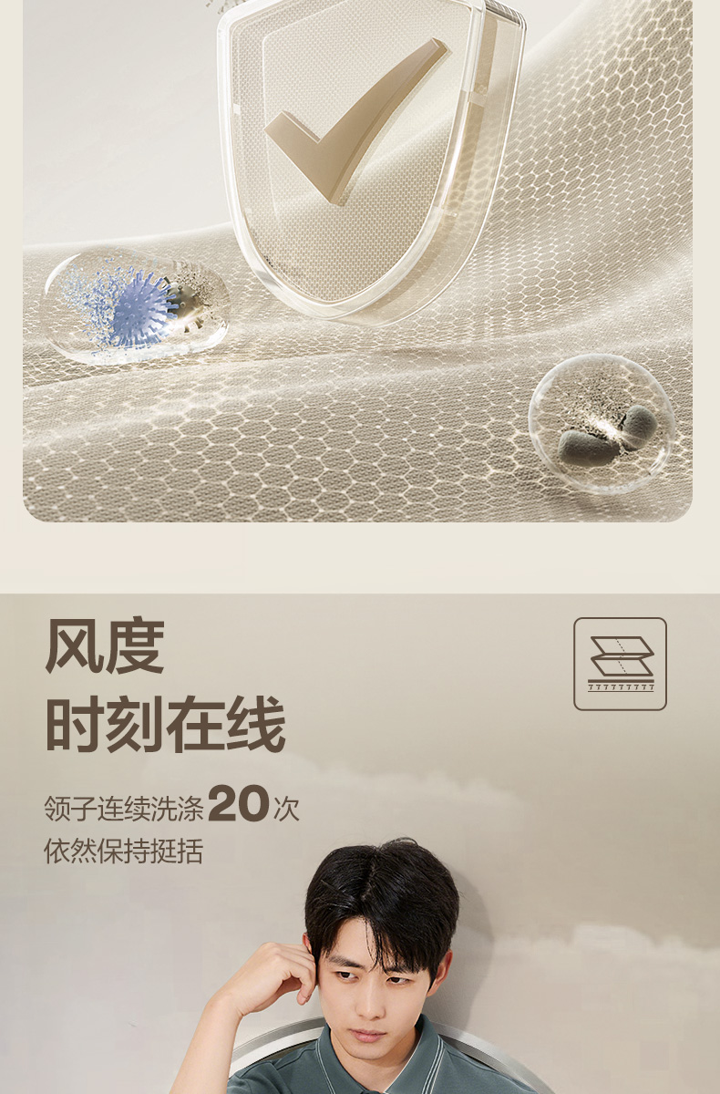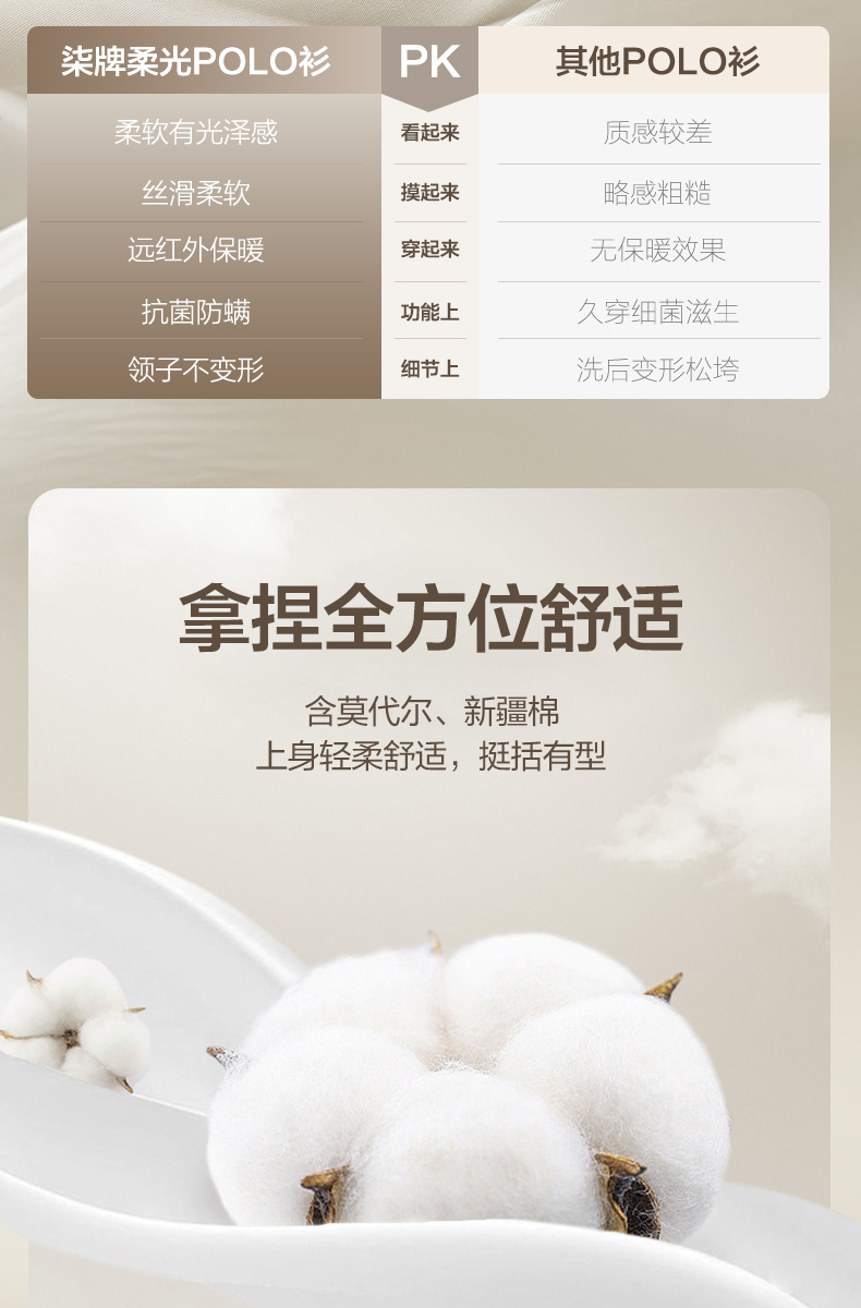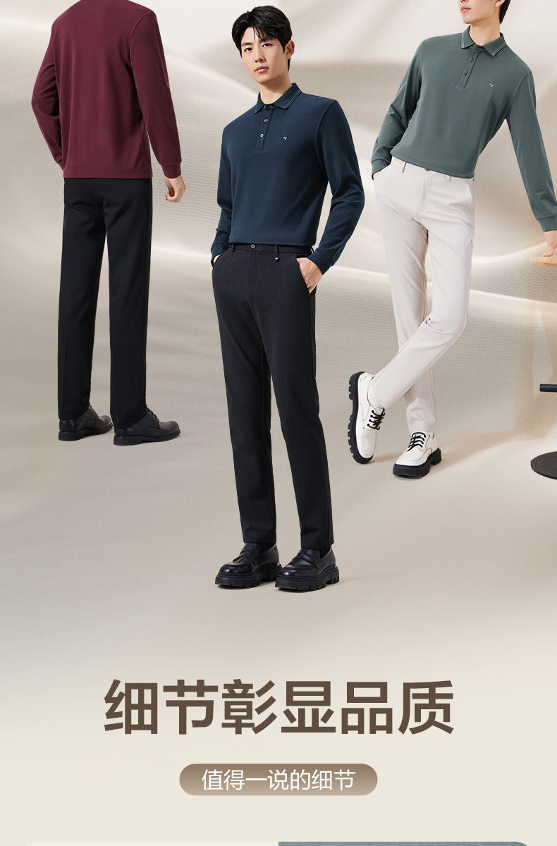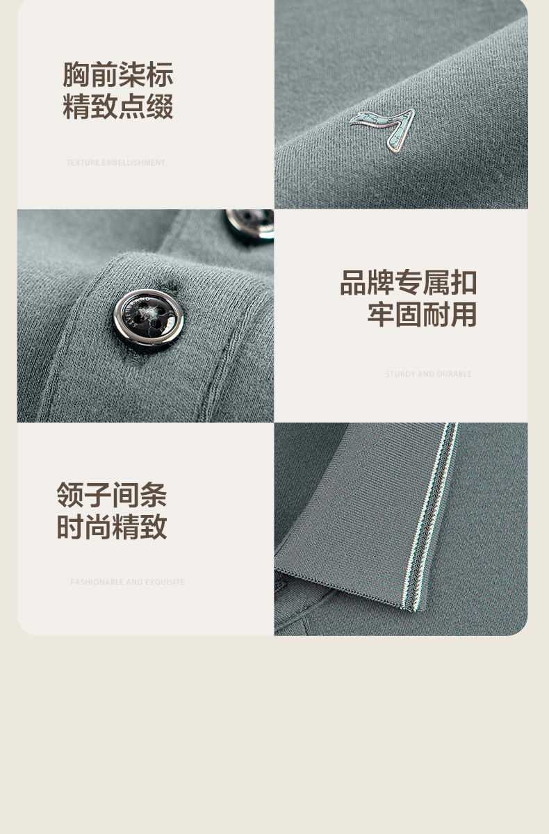 【远红外发热/不变形领】柒牌长袖Polo衫男秋季抗菌防螨翻领T恤129T70480