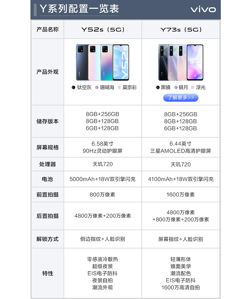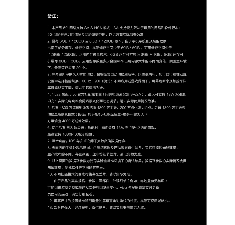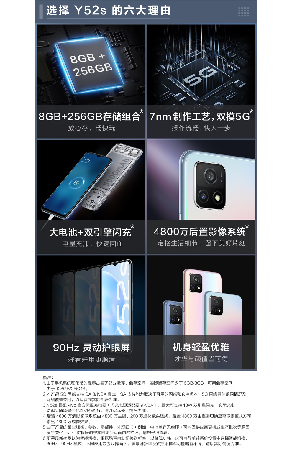 【品牌直发】vivo Y52s新品双模5G 后置4800万双摄 5000mAh电池 90Hz高刷 5G手 6GB+128GB 官方标配版