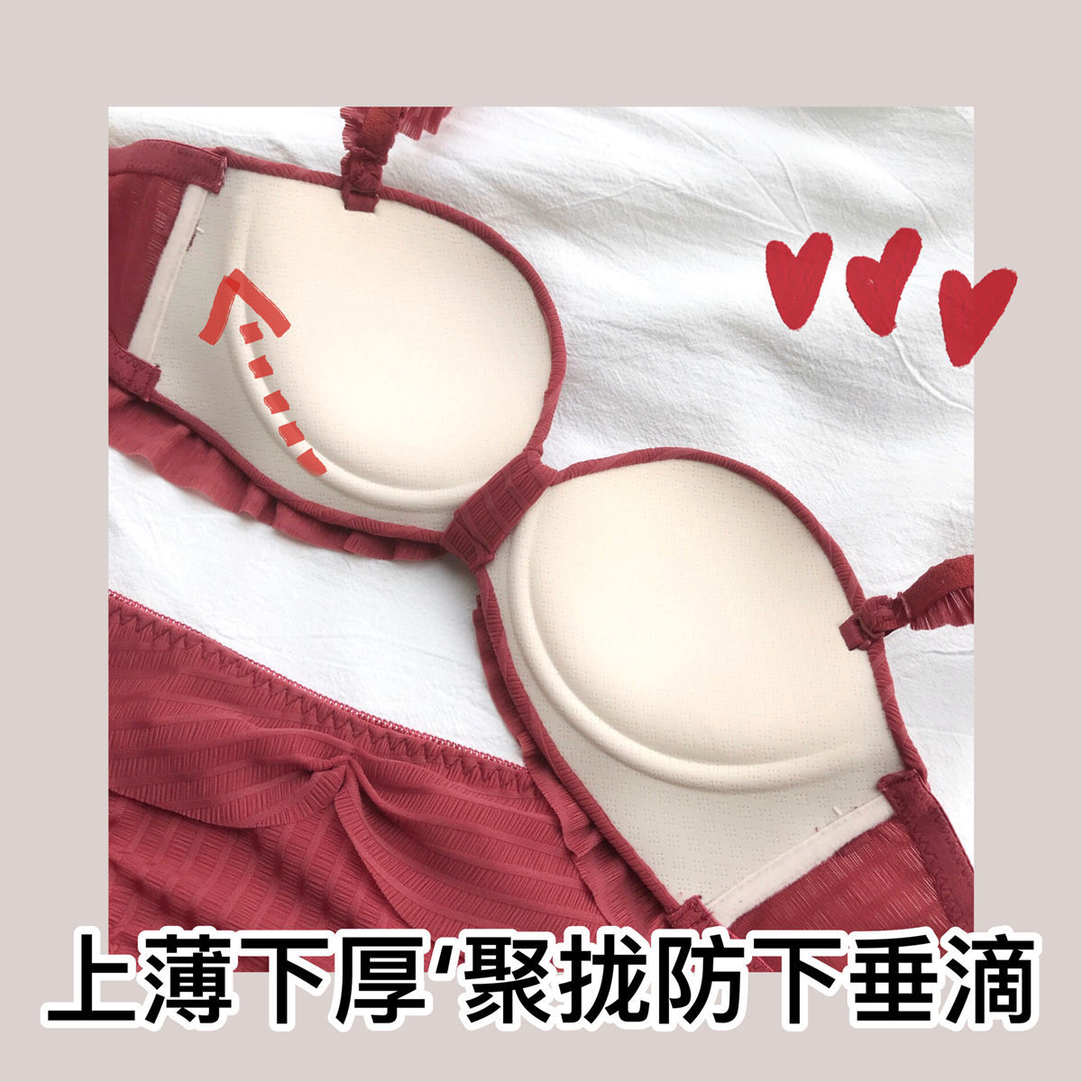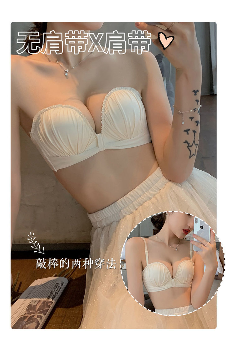 【两件优惠装】性感内衣少女无肩带防滑礼服文胸罩+日系少女无痕内衣无钢圈聚拢bra文胸可拆卸晚礼盛宴文胸圣诞七夕情人节