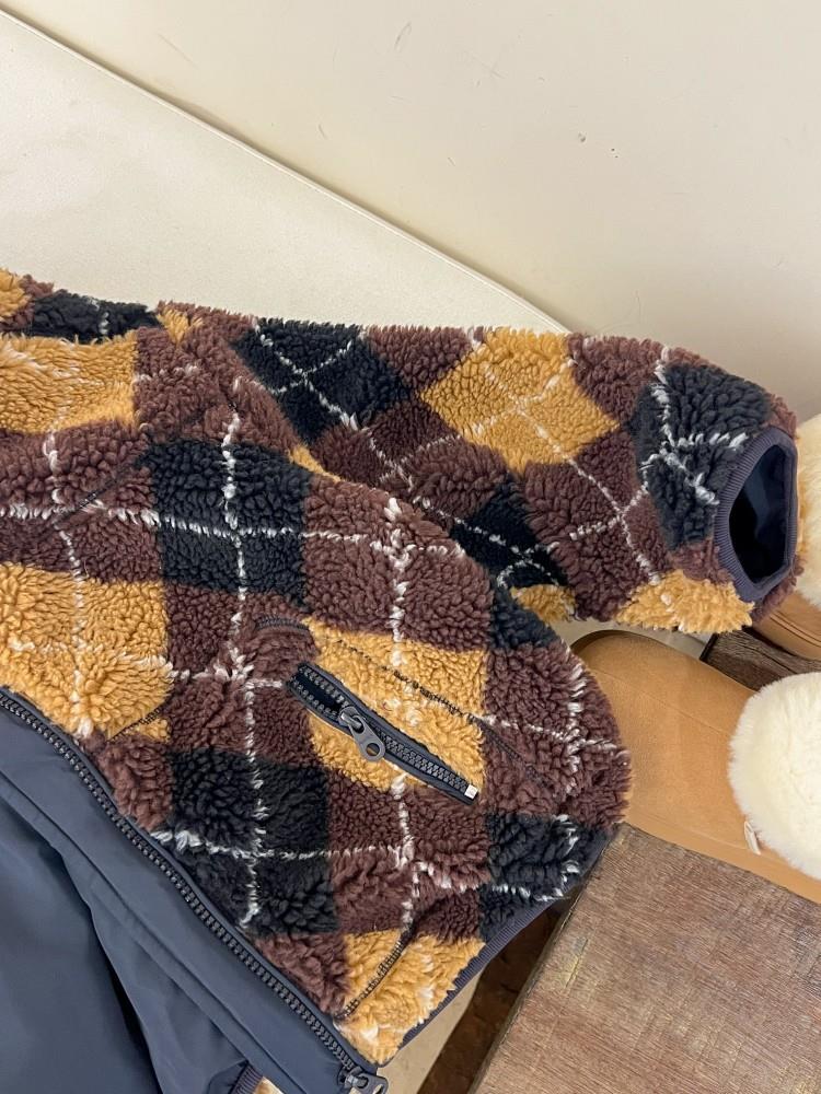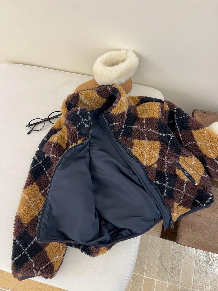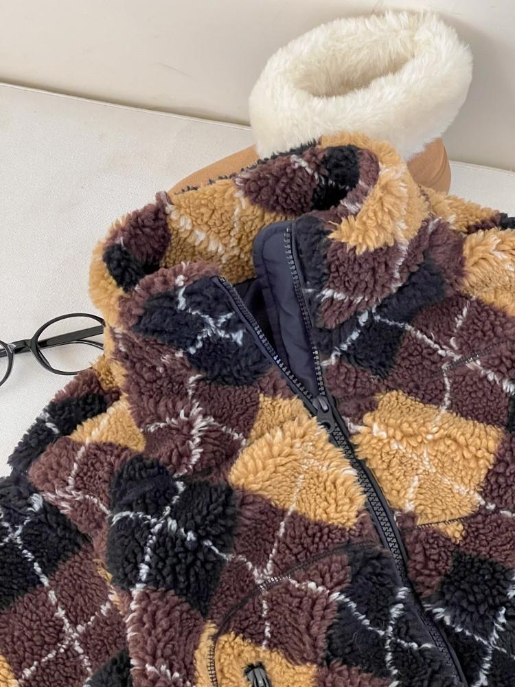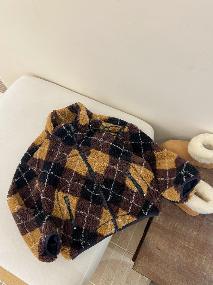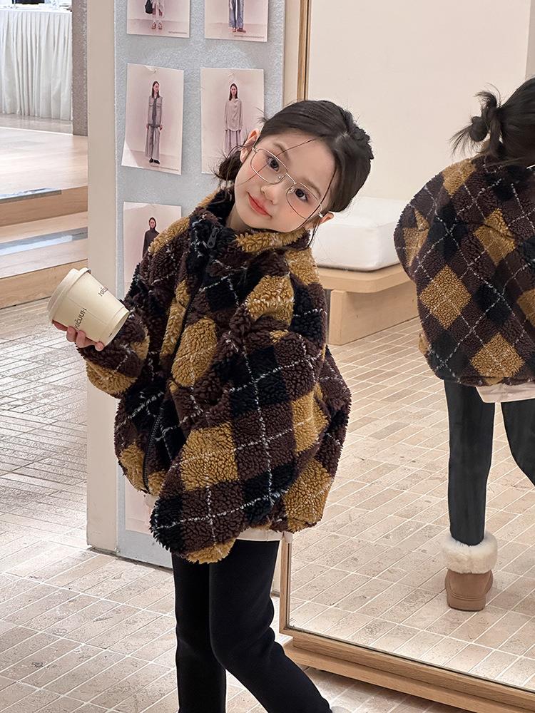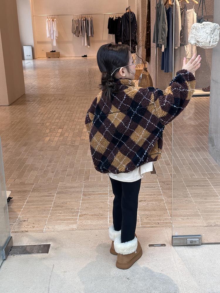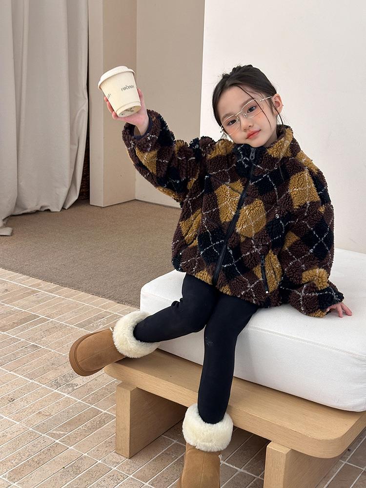 艾摩贝贝儿童复古立领夹克棉衣2025冬女童时髦实穿菱形格棉服外套