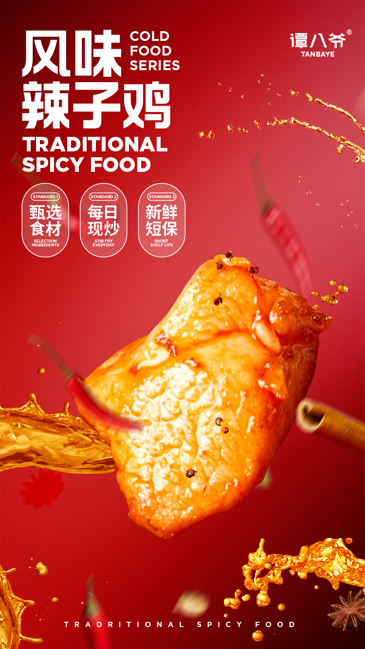谭八爷冷吃辣子鸡丁香辣鸡腿肉四川特产麻辣口水鸡大块鸡肉真空包装开袋即食熟食小吃休闲零食
