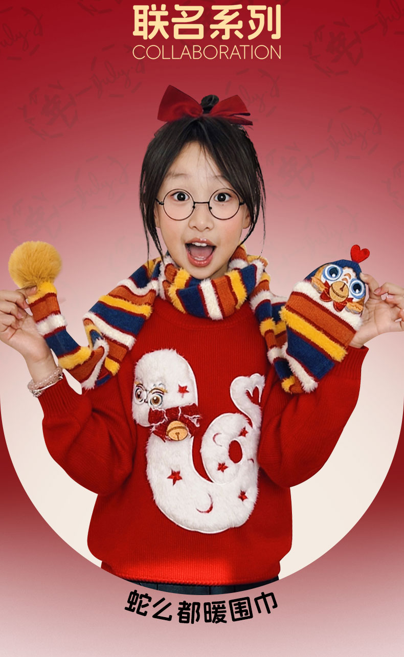 【机灵姐联名款】蛇么都暖围巾男女童秋冬围巾新款保暖原创设计
