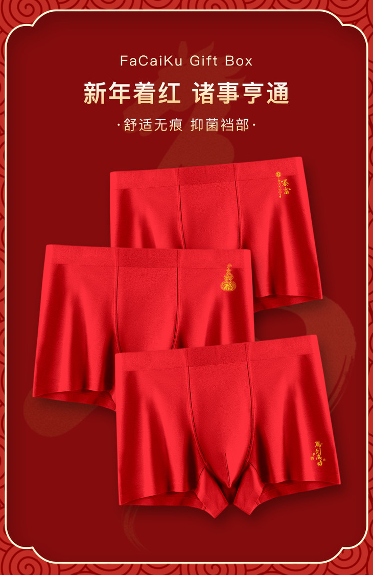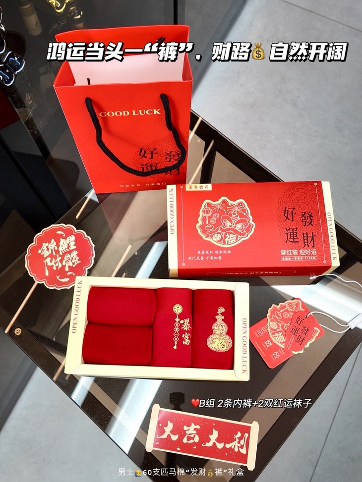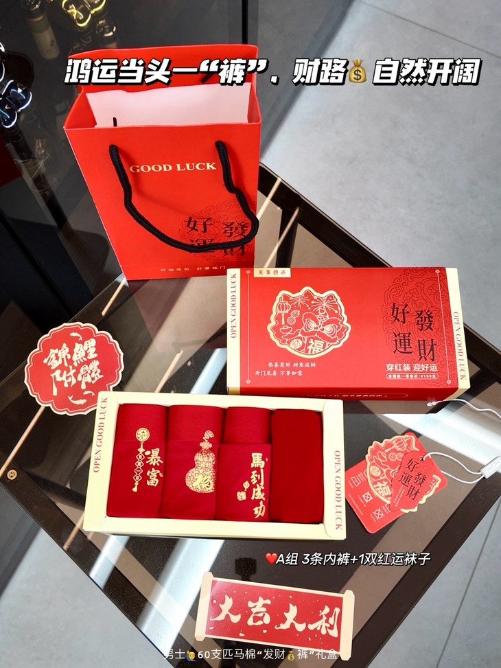 【超值组合,一次备齐】 既然决定要穿,😘就决不能将就! 为你把🧧仪式感、舒适感和性价比全配齐: ✅ A组:经典实力派 | 3条内裤+1双红运袜子 ✅ B组:红运满配礼 | 2条内裤 + 2双红运袜子 “穿红”的讲究在于从头到脚,从内到外,好运🔥加倍!