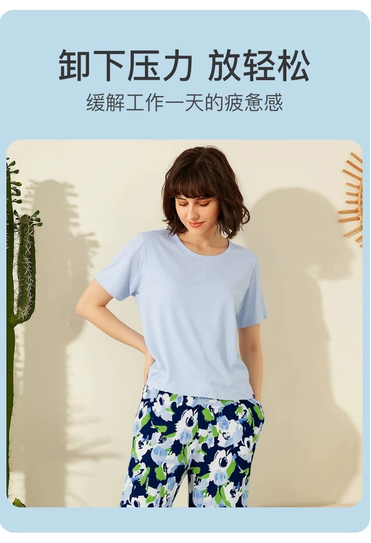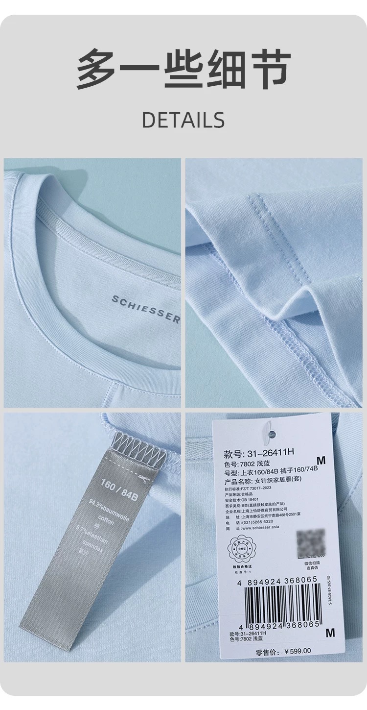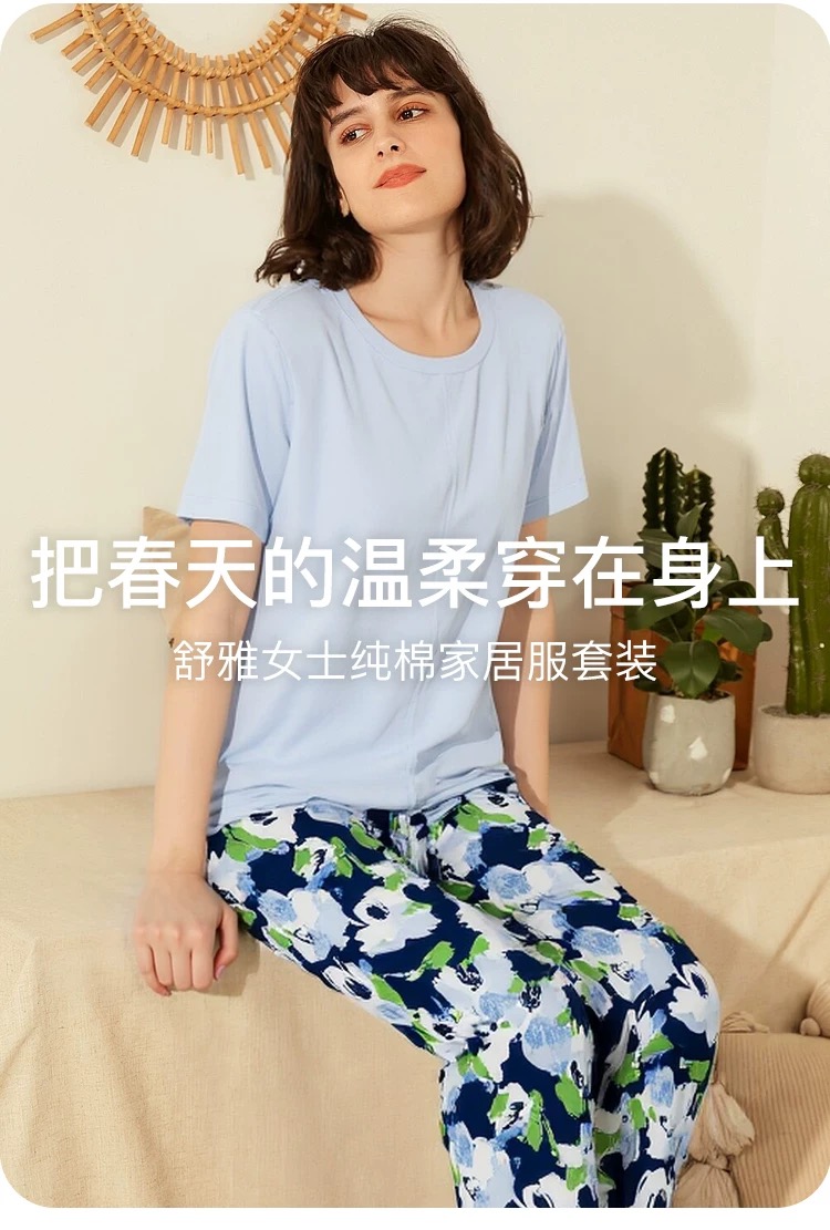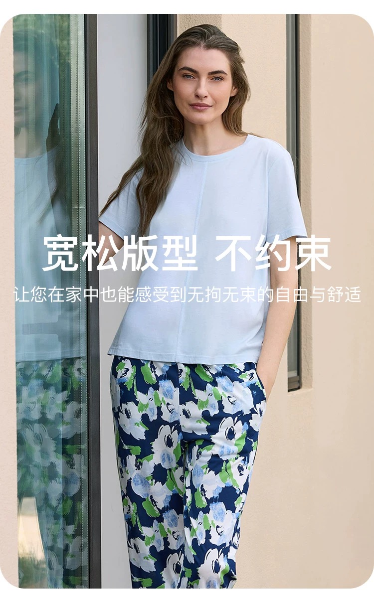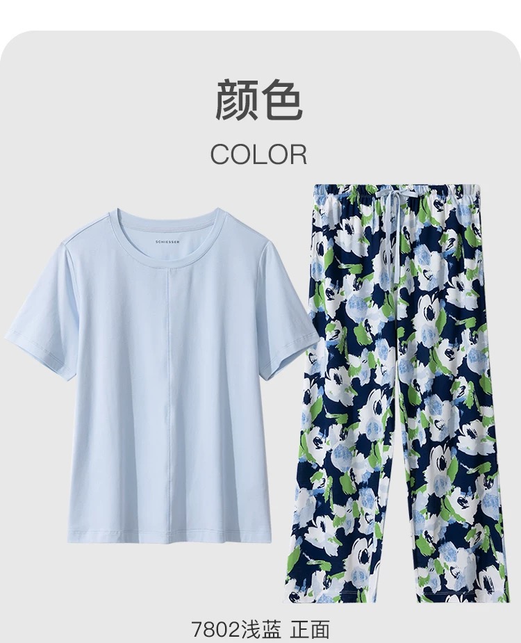 【棉莫单面布】SCHIESSER德国舒雅女短袖长裤套装 32S棉莫代尔单面 50%棉50%莫代尔 150g/m2 31/26411H