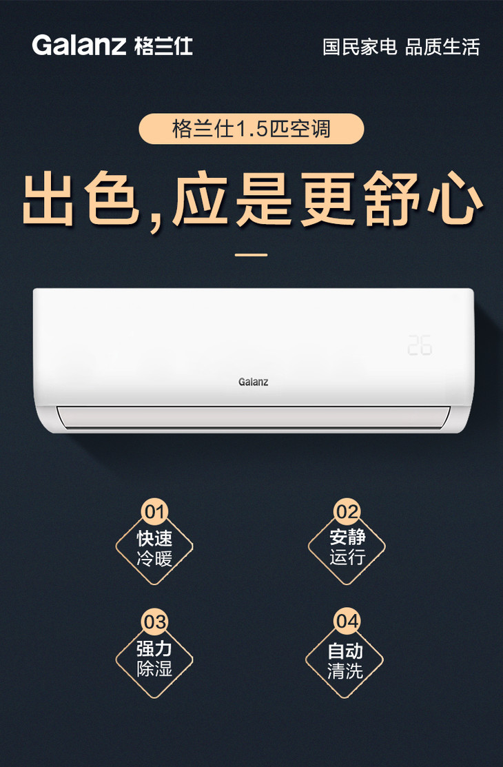 格兰仕 Galanz 1.5匹 定速 冷暖 大白Ⅱ 强劲制冷暖 空调挂机 KFR-35GW/dLa72-150(A3)