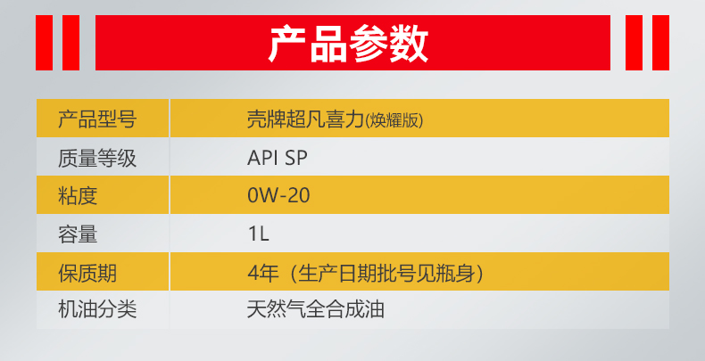 壳牌(Shell)超凡喜力焕耀版0W-20 SP级 1L 全合成油汽车机油