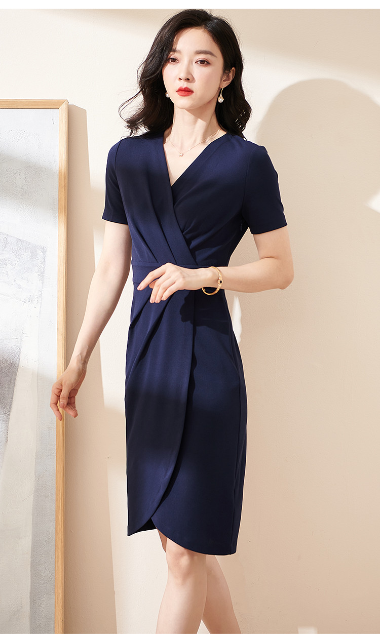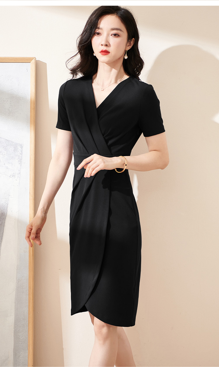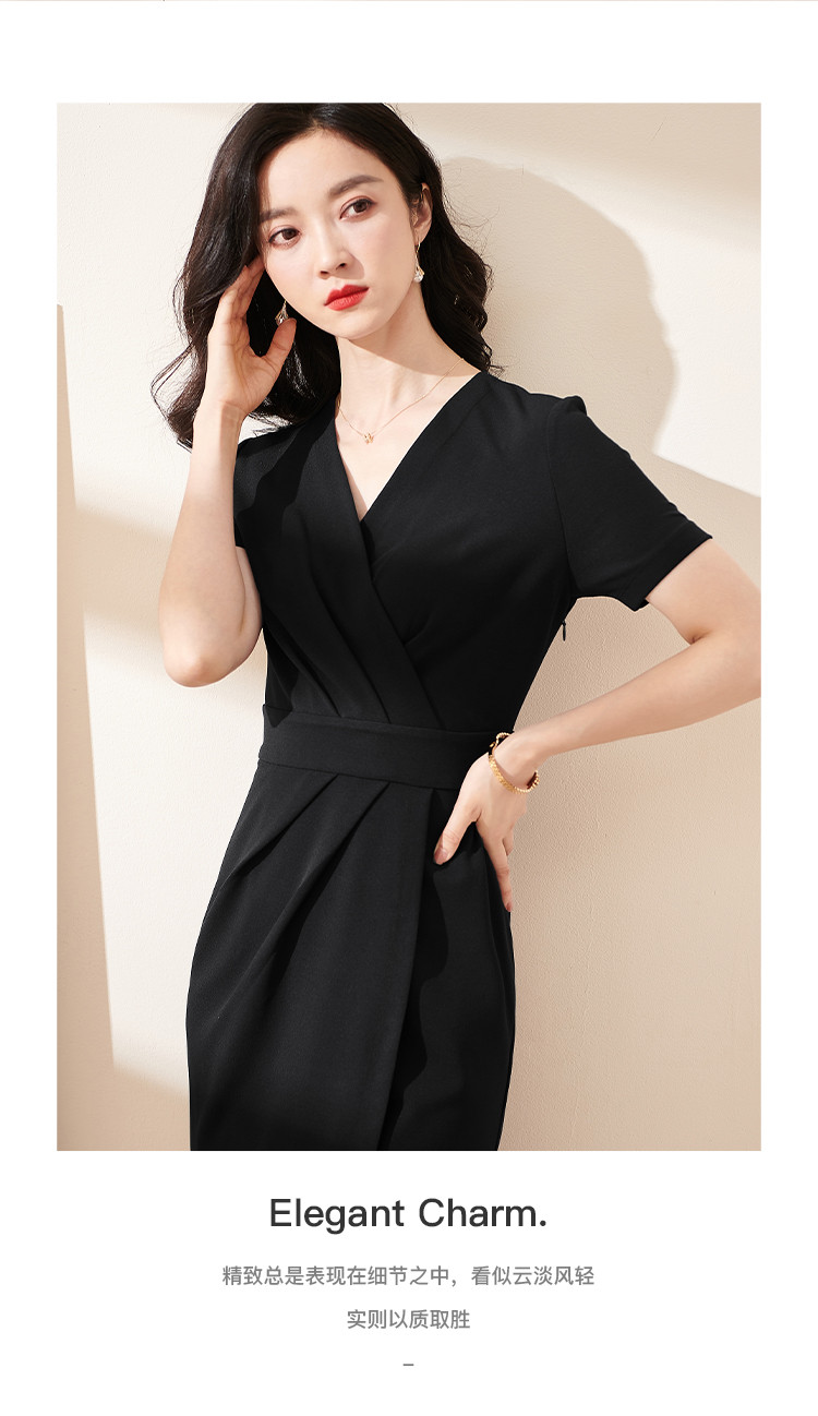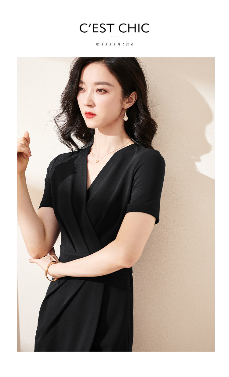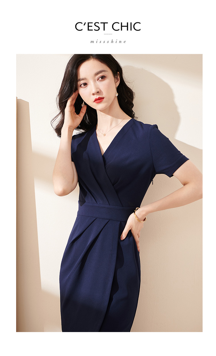 米思阳气质包臀裙夏季新款时尚法式优雅v领修身连衣裙