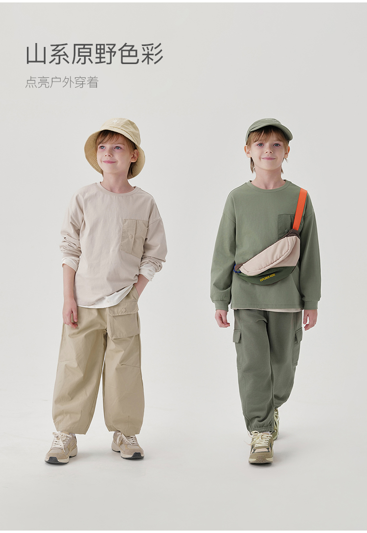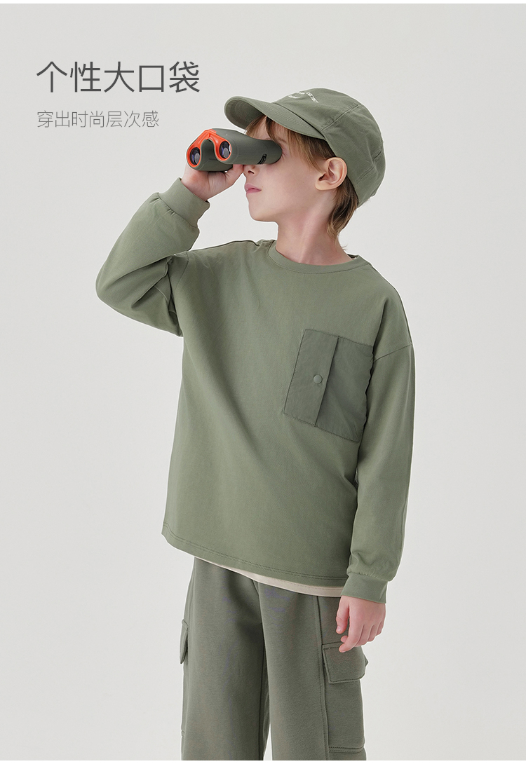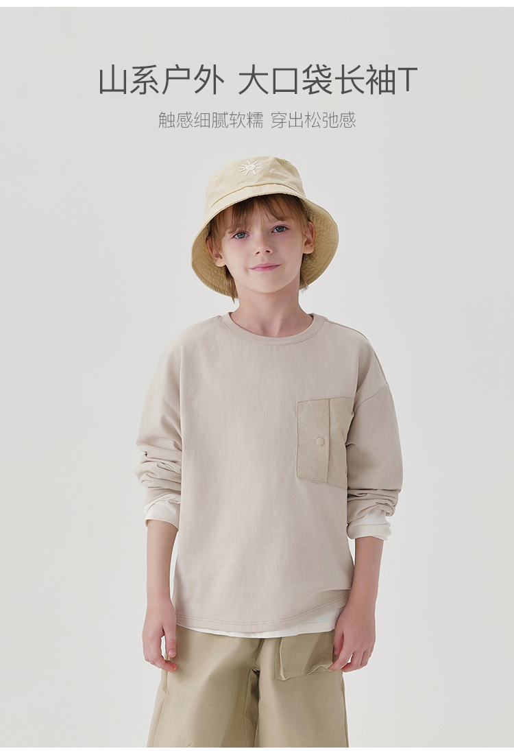 马克珍妮男童山系户外大口袋长袖T恤儿童上衣2024秋装新款240970