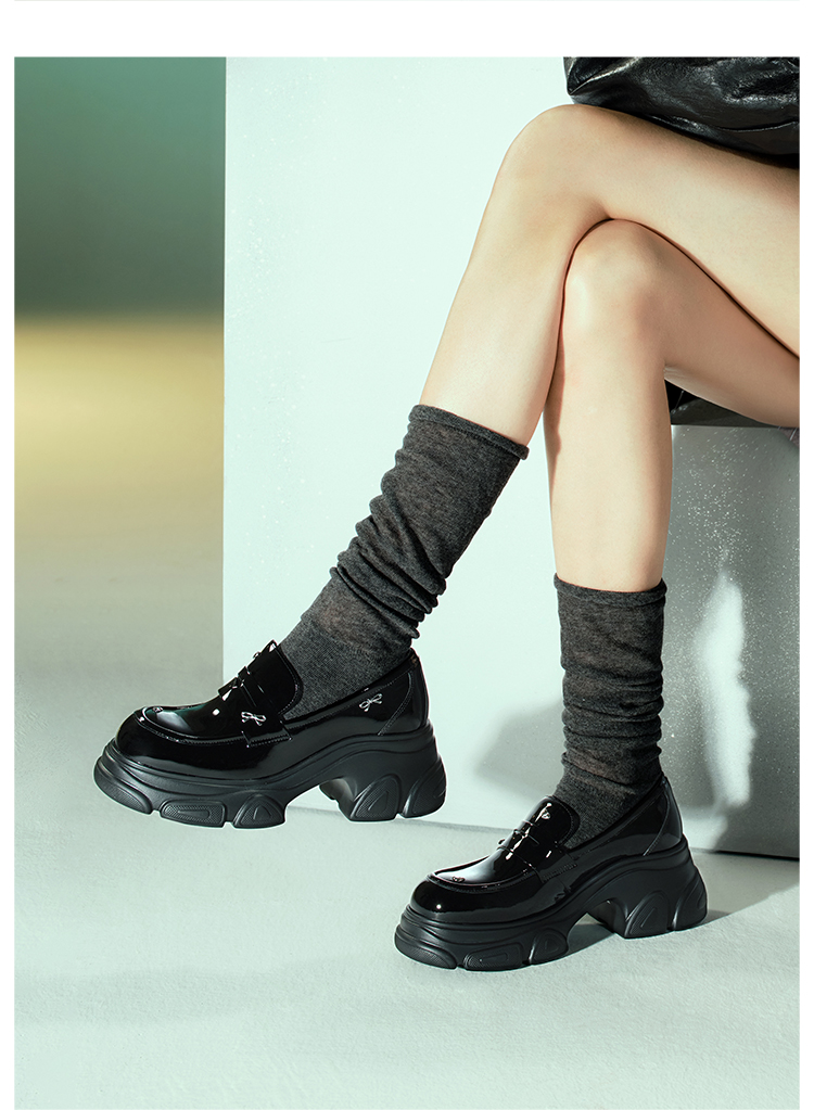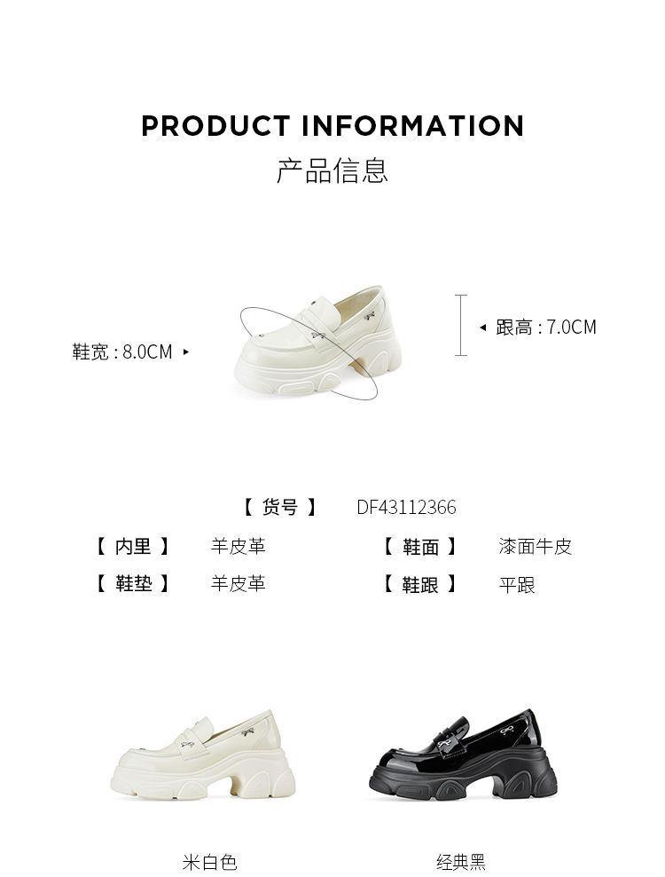 D:FUSE迪芙斯2024秋季新款漆皮轻便厚底乐福鞋DF43112366