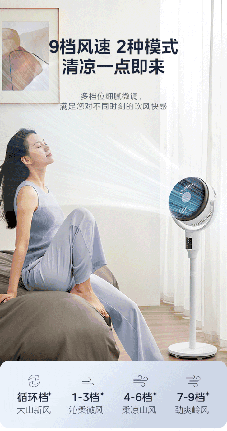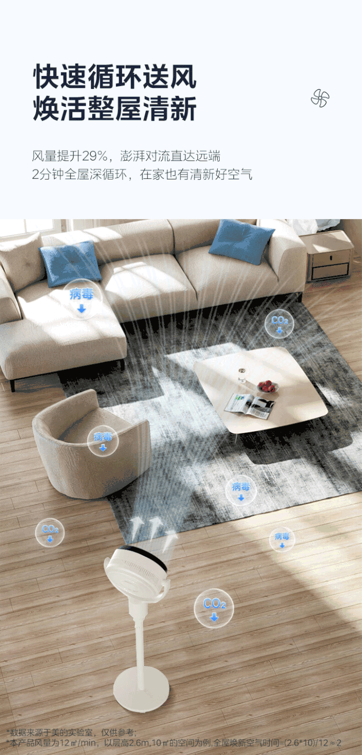 美的(Midea)(510114 )空气循环扇直流变频电风扇家用风扇立式落地扇遥控定时换气扇轻音节能电扇除菌净化可选 FGD24UZR