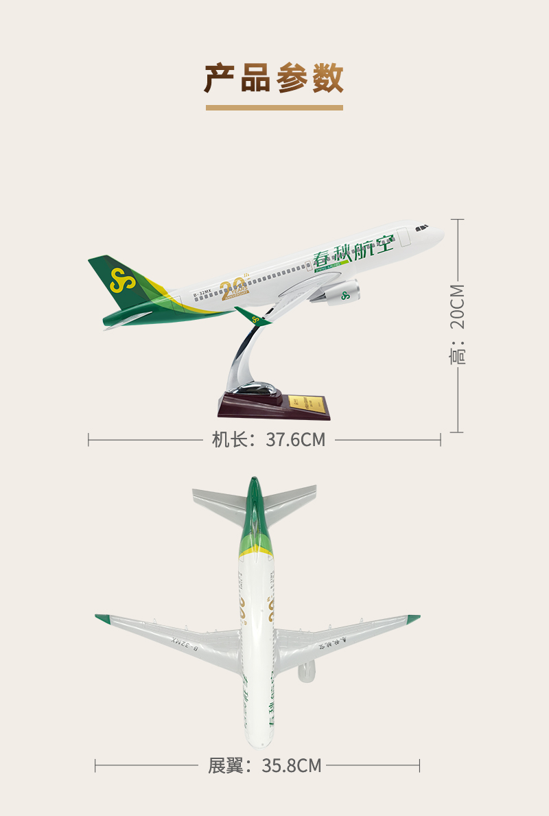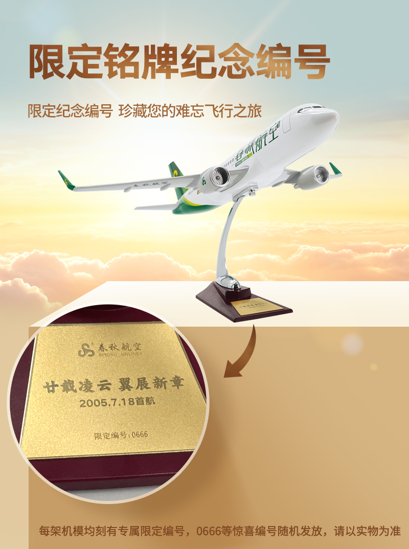 【典藏版】春秋航空新彩绘飞机模型1:100【自营】