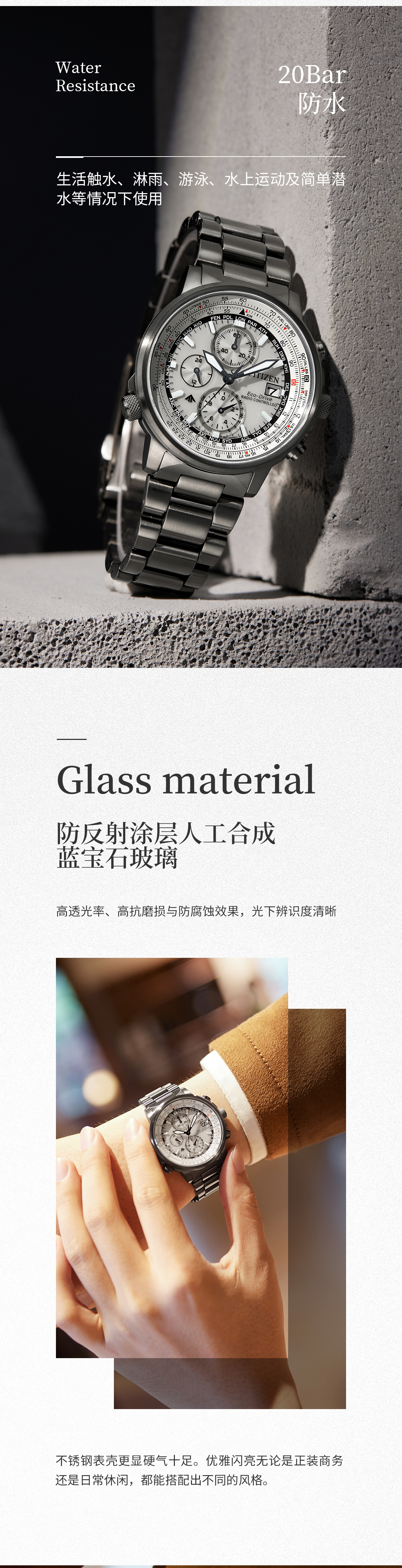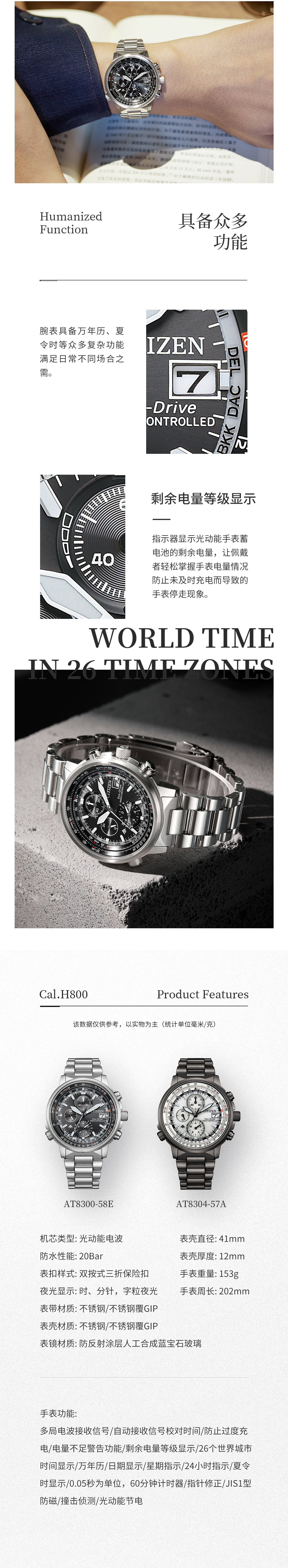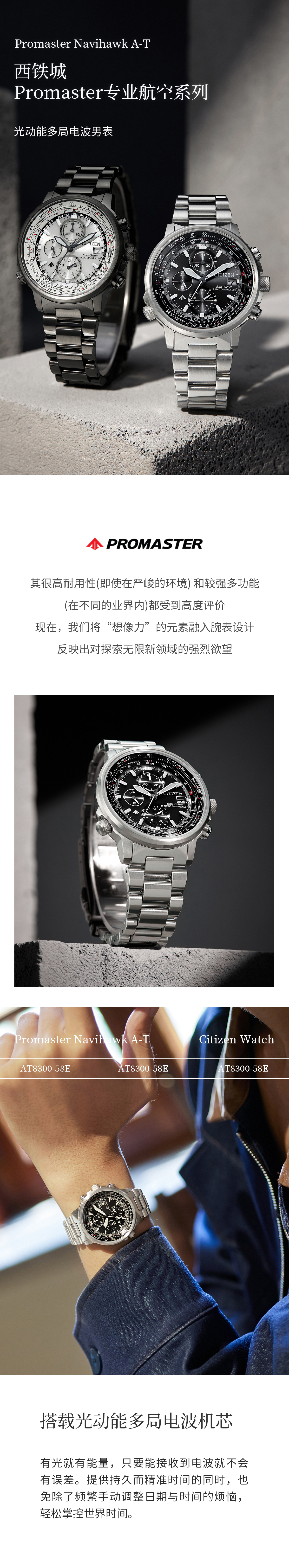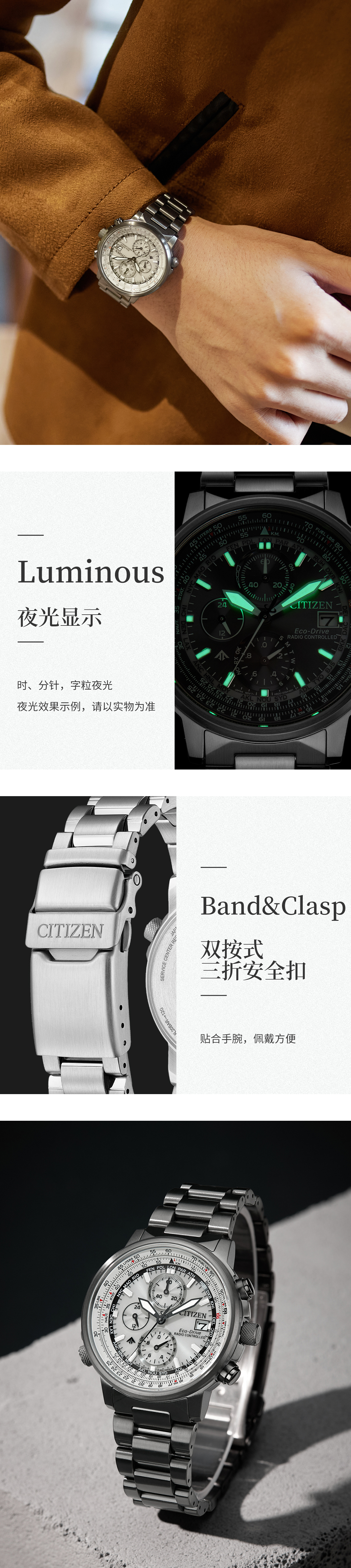 西铁城(CITIZEN)光动能多局电波男表蓝天使三代CB5848-57L