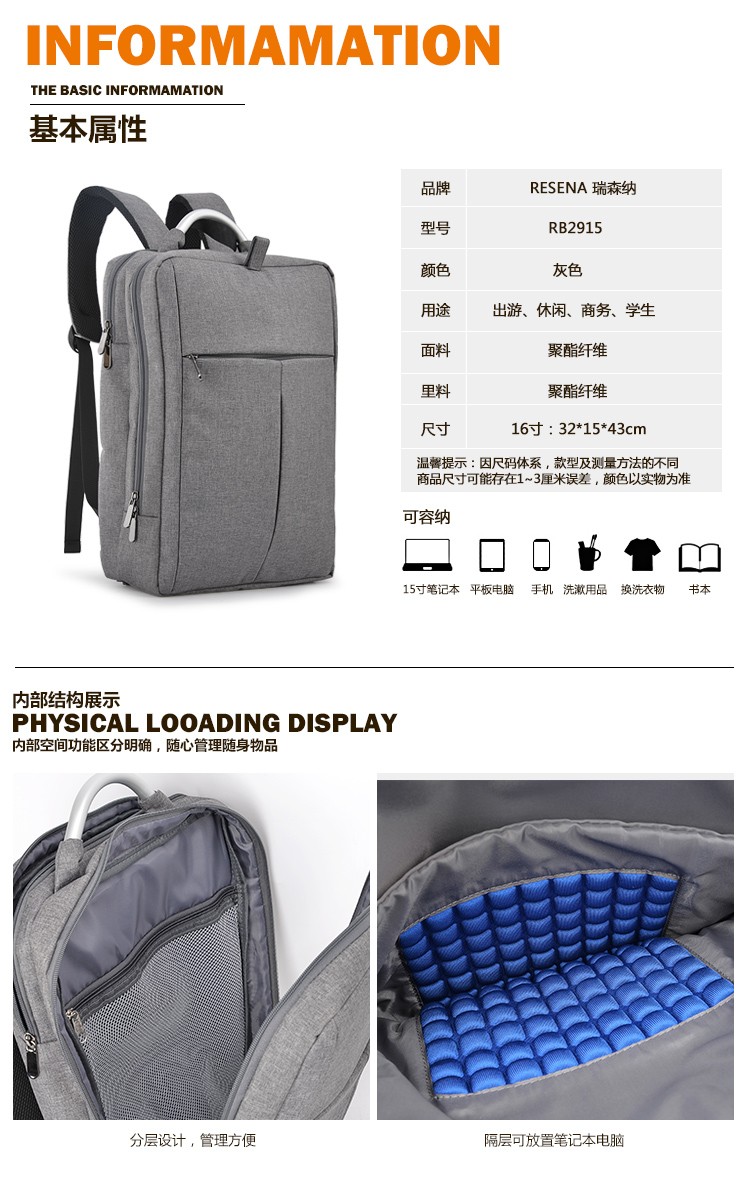 瑞森纳(RESENA)轻便商务双肩包休闲商务笔记本电脑包16英寸男女书包双肩背包