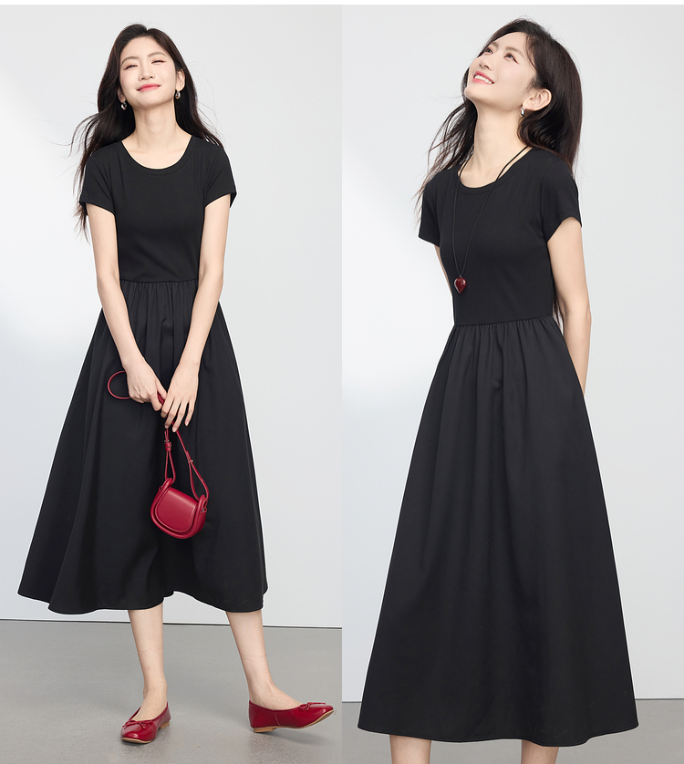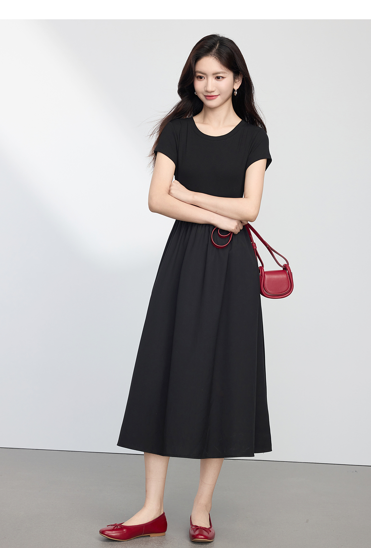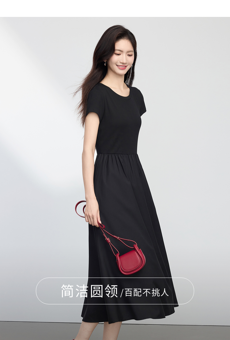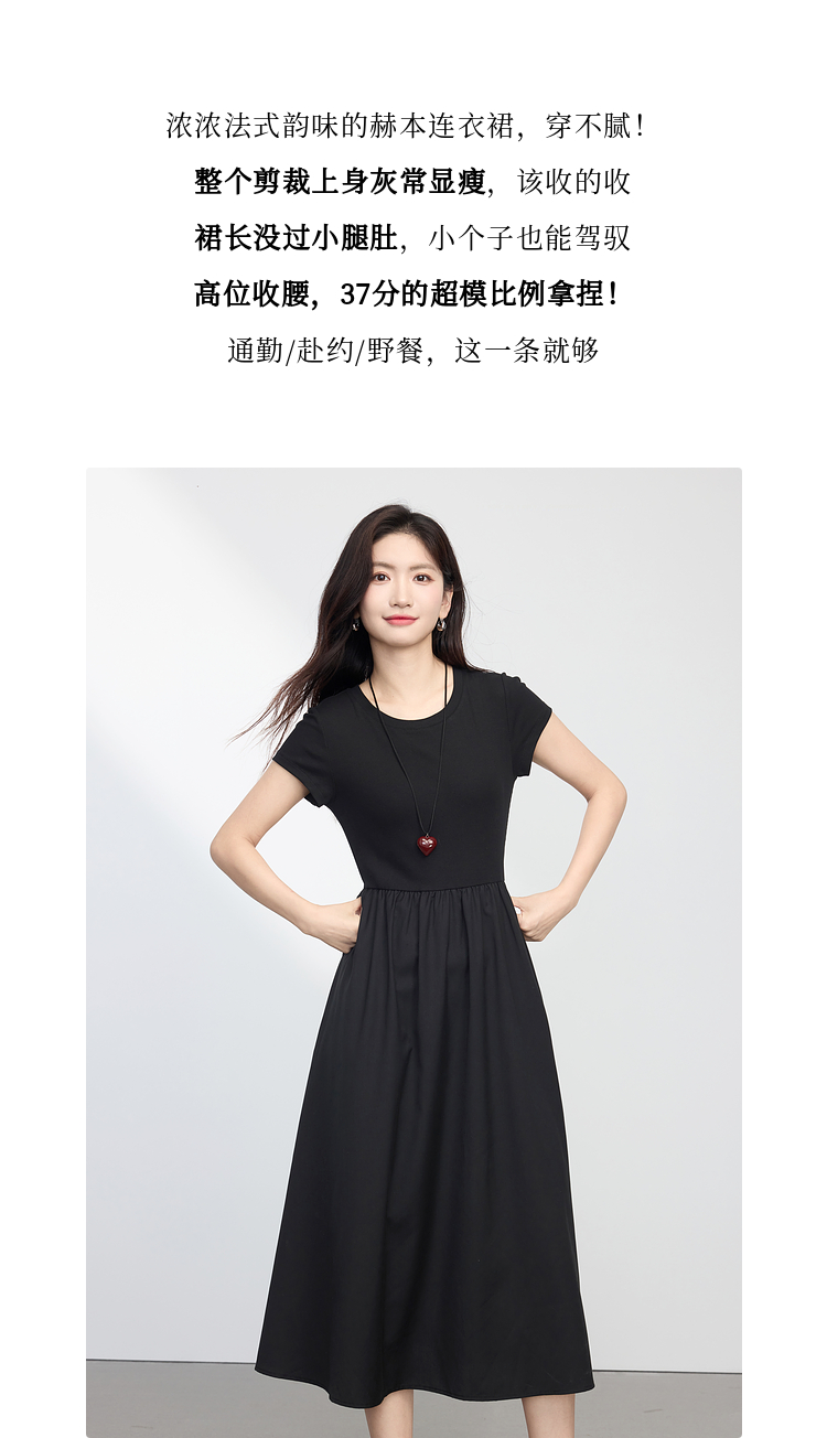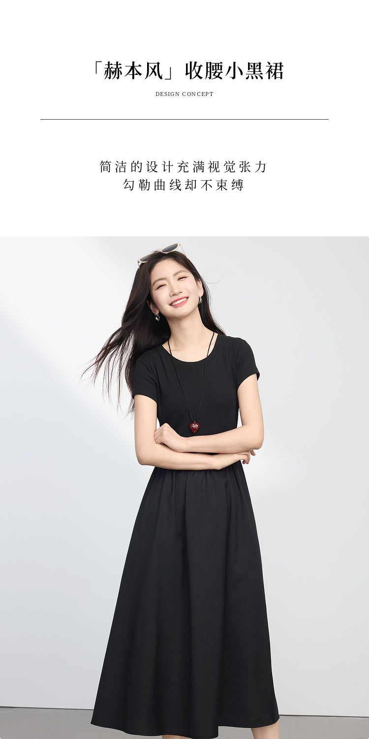 【专属特价】熙世界法式赫本风黑色连衣裙女2025夏季新款通勤气质显瘦收腰裙子